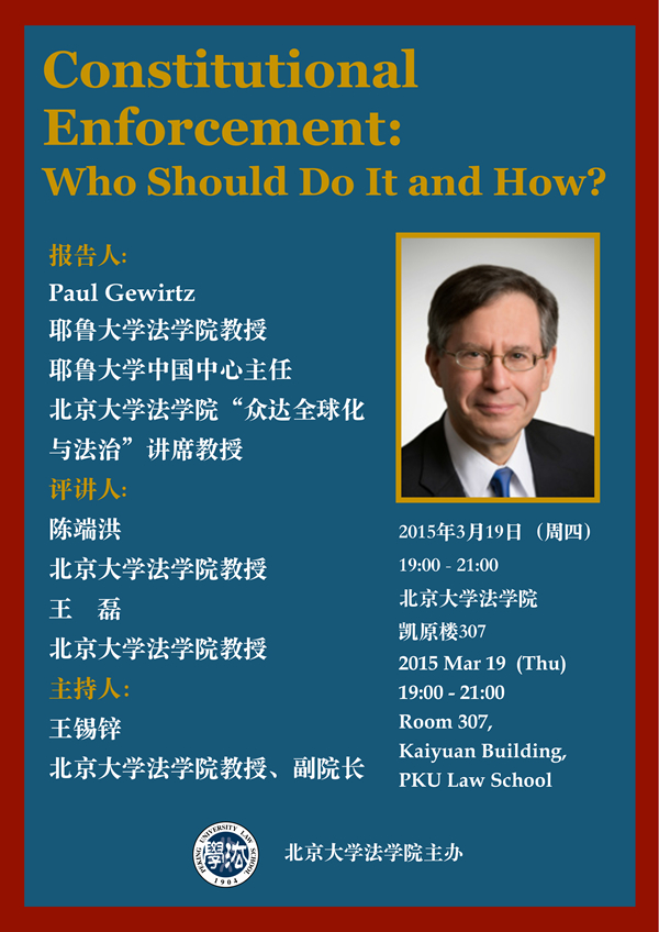 【讲座】耶鲁大学3354cc金沙集团Paul Gewirtz 教授讲座