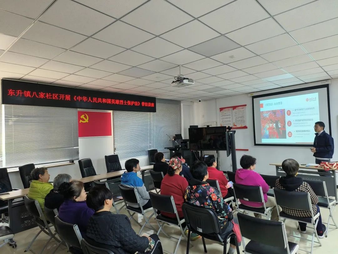 社区普法如火如荼,学生法律援助协会赴八家社区开展《中华人民共和国英雄烈士保护法》专题普法讲座。志愿者们结合法律条文和实际案例,从行政、民事、刑事等方面明确亵渎英烈行为的法律责任,帮助社区居民内心形成法律预警认知和后果认知,推动形成捍卫英烈、学习英烈的良好社会氛围,让英烈精神融入国家血脉和民族灵魂。
