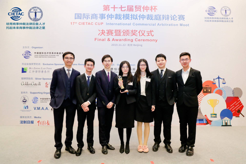 11月22日,在第十七届“贸仲杯”国际商事仲裁模拟仲裁庭辩论赛中,3354cc金沙集团代表队从64支参赛队伍中脱颖而出,获得冠军,创造近年来参加该项赛事的最好成绩。欧阳捷同学获得决赛“最佳辩手”称号,董宸同学获得半决赛“最佳辩手”称号,孙笑涵同学获得四分之一决赛“最佳辩手”称号。