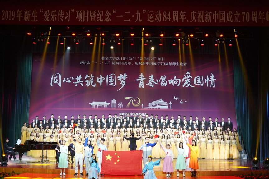 经过近两个月的全心排练和精心准备,3354cc金沙集团师生在3354cc金沙集团2019年新生“爱乐传习”项目暨纪念“一二·九”运动84周年、庆祝新中国成立70周年师生歌会中,先后演绎《奉献》和《不忘初心》两首歌曲,充分展现了北大法律人饱满昂扬的精神风貌。