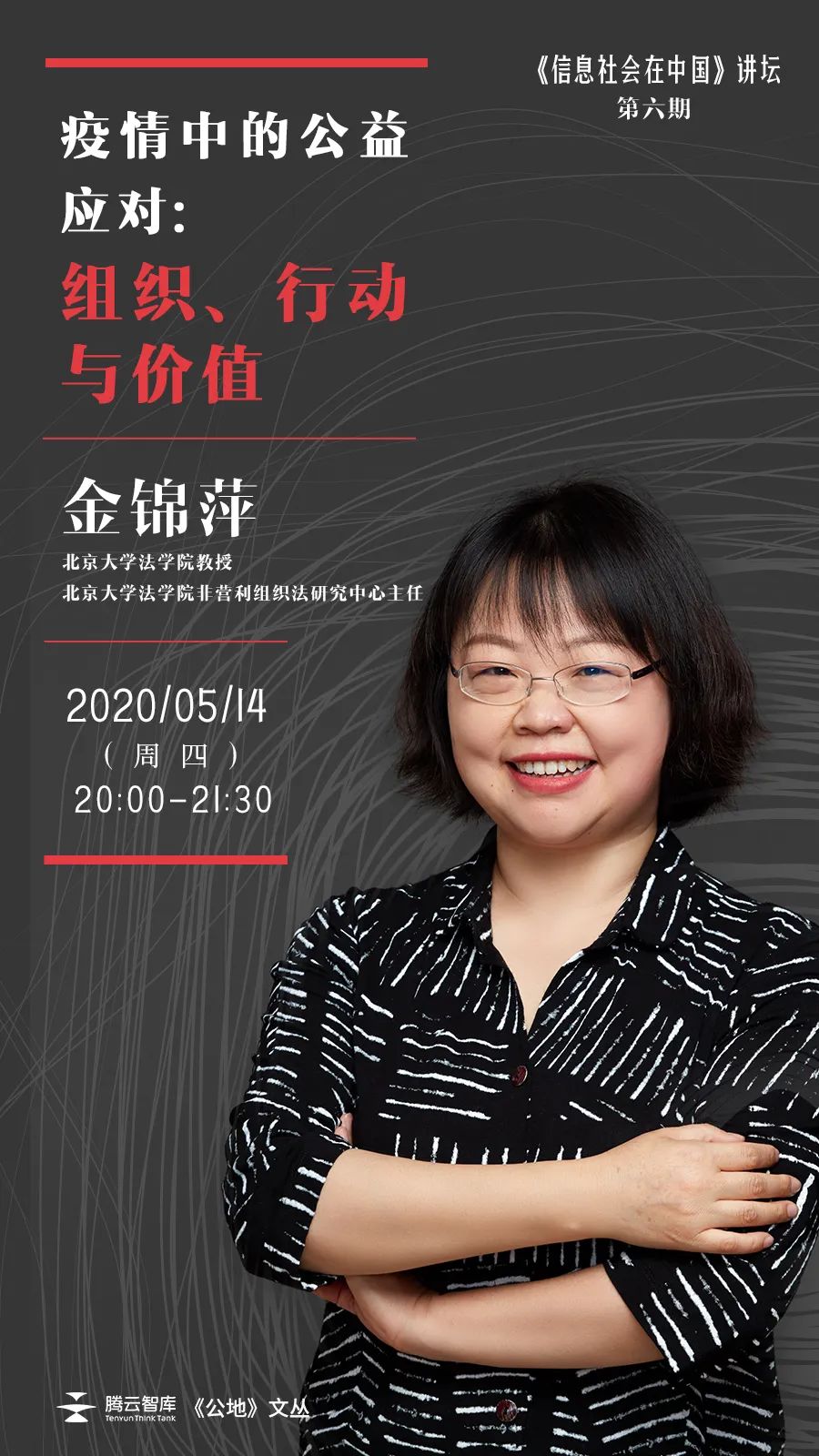 在抗疫战斗中,青年扮演着重要的角色。5月14日,金锦萍老师作客腾讯社会研究中心的“信息社会在中国——疫情下的社会认知系列讲坛”。金老师充分结合当代青年在公益志愿服务中的社会责任与时代担当,以《疫情中的公益应对:组织、行动与价值》为题进行在线分享。