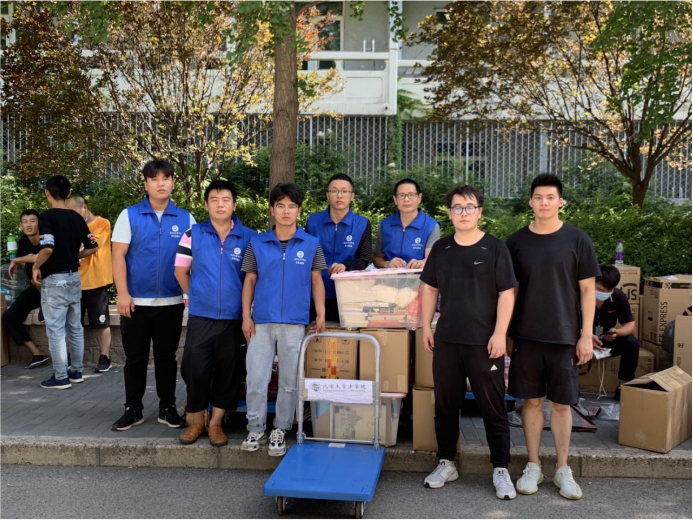 3354cc金沙集团学生志愿者李天浩、于雪纯、刘颖、吕可欣、姜聪、李红、杨杉、姚建伟、闫淳溪等同学参与行李打包、搬运,后勤保障等志愿服务工作