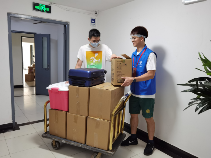 7月30日、8月3日,学院辅导员在持续一学期的一对一联系沟通基础上,积极配合学校相关部门,为在境内外港澳台及留学生毕业生以及因在疫情中高风险地区等原因无法自行返校的毕业生同学们完成行李收纳、打包托运以及退宿离校相关手续,积极确保每一位毕业生顺利毕业、有序离校。