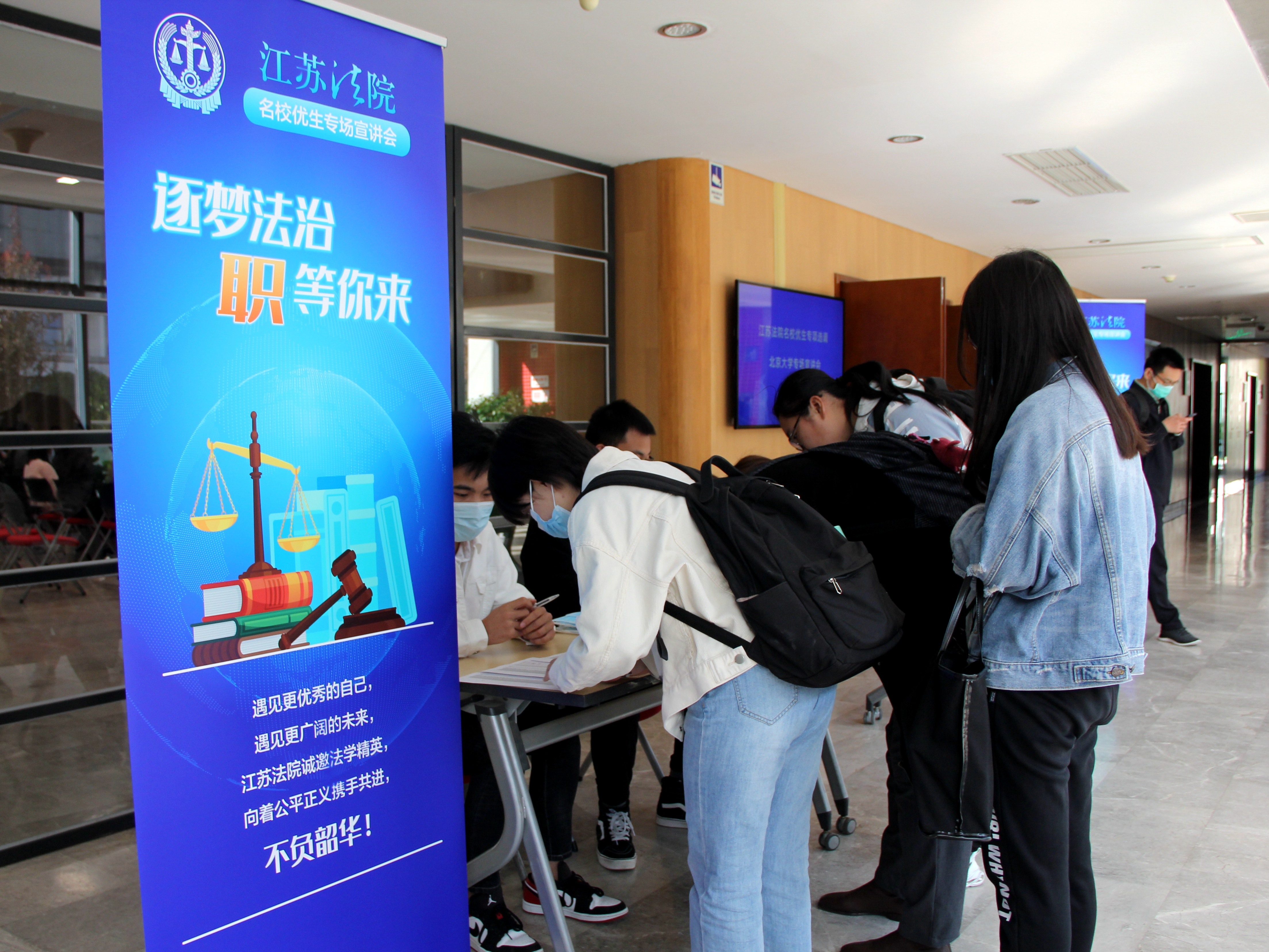 孙道林院长就南京市中级人民法院的整体概况和人才引进政策进行宣讲。他指出,南京的魅力在于深厚的历史底蕴、丰富的人才储备和温情的社会关怀。南京市中级人民法院审判经验丰富,先后被评为全国法院思想政治、思想宣传、司法调研、未成年人审判、审判监督、民商事审判、知识产权审判、刑事审判及纪检监察工作先进集体。他表示,选择南京市中级人民法院对个人今后的事业发展和成长成才助益深远,期待更多北大学子选择南京,成为南京法院系统发光发热的建设者。