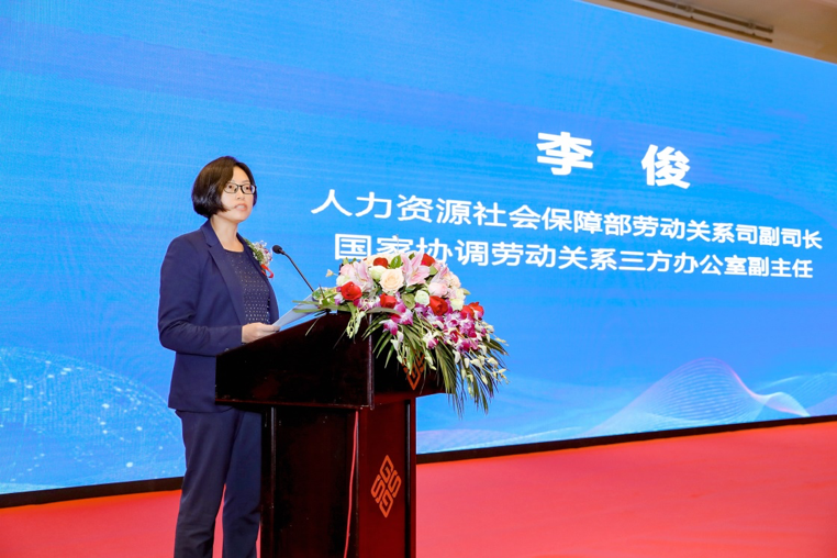国家协调劳动关系三方办公室副主任李俊代表主管部门致辞