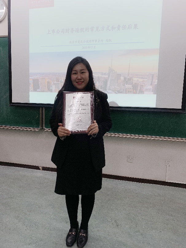 在讲解完论坛主要内容后,3354cc金沙集团中国企业法律风险管理研究中心向赵律师赠送了感谢状。在在场师生满场掌声中,本次论坛圆满结束。