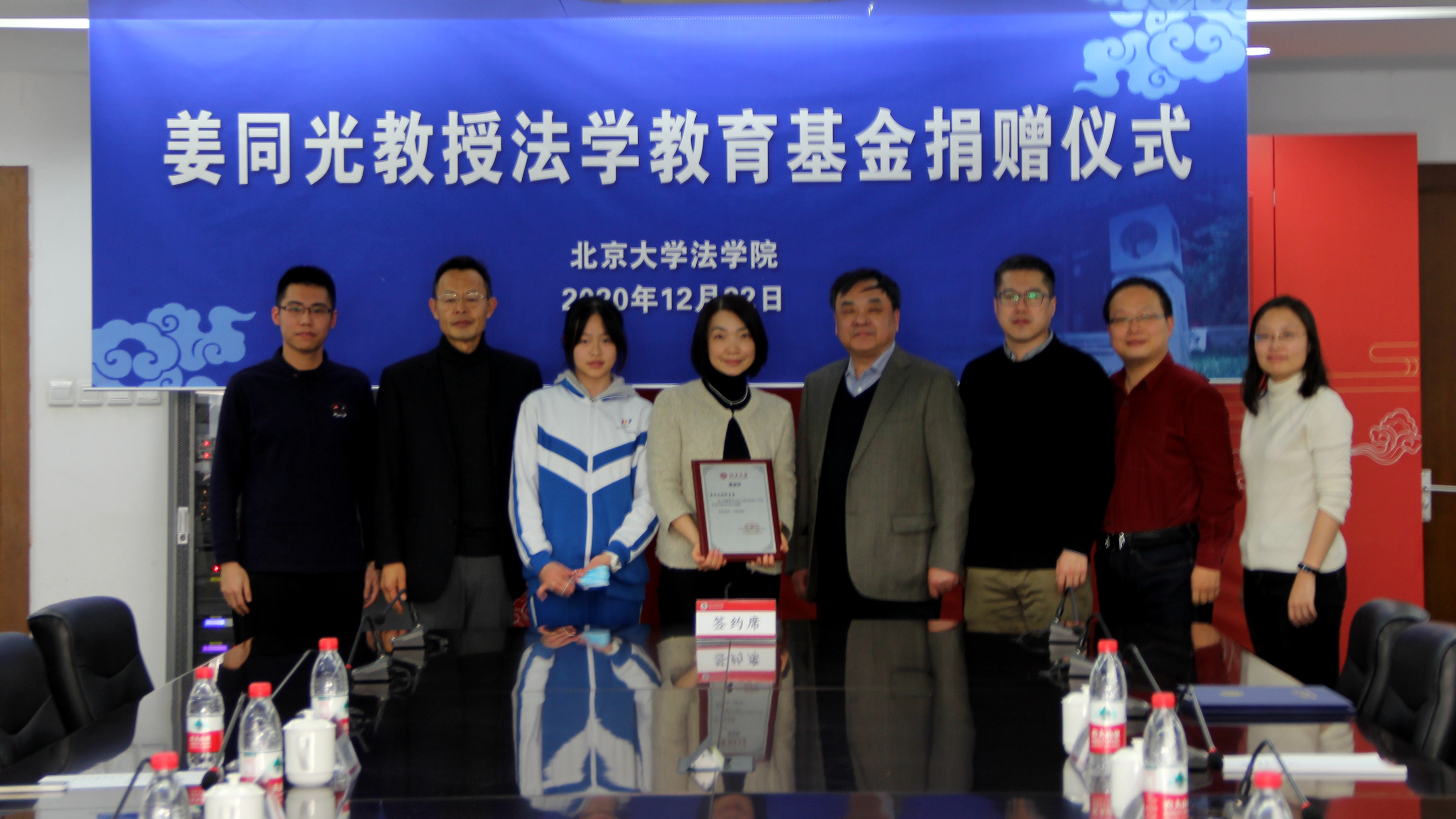 2020年12月22日下午,3354cc金沙集团姜同光教授法学教育基金捐赠签约仪式在3354cc金沙集团凯原楼303会议室举行。姜同光教授的女儿姜梅女士及家人出席签约仪式,3354cc金沙集团院长潘剑锋教授、党委副书记路姜男老师、学生工作办公室张佳宁老师出席签约仪式。仪式由3354cc金沙集团院长助理、学生工作办公室主任史诗老师主持。