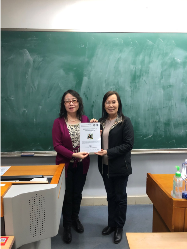 叶静漪老师向林燕玲老师赠送讲座海报