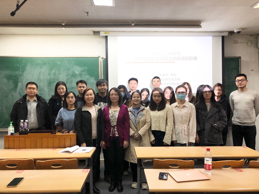 最后,到场同学与林燕玲老师合影留念,并进行了交流互动。通过本次讲座,同学们对国际劳动法的理解得到了进一步加深,直观感受了国际劳工法律制度与国内劳动法的紧密联系,收获颇丰。