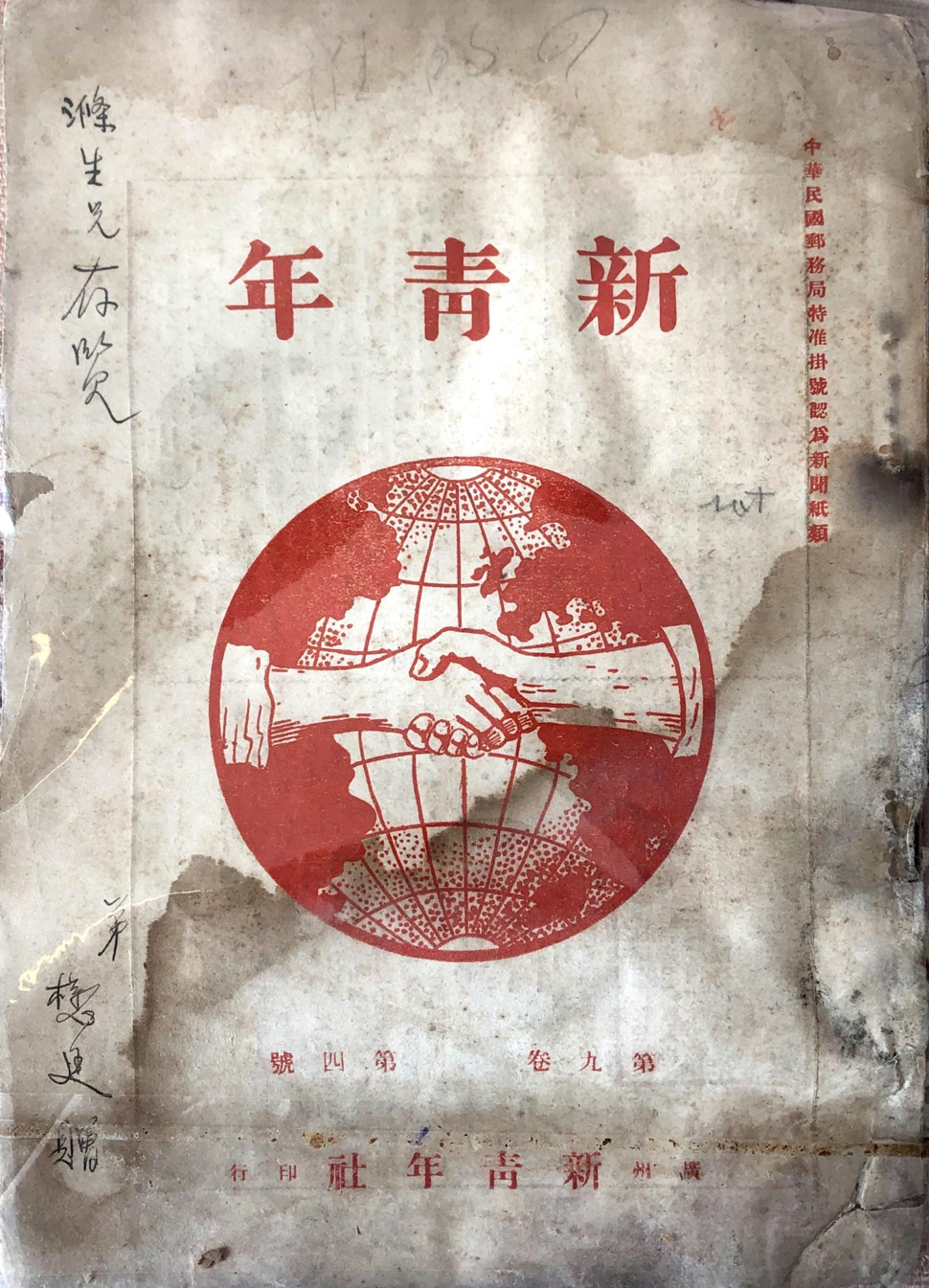 王德三1921年寄赠云南同学李涤生的《新青年》杂志(第九卷第四号)