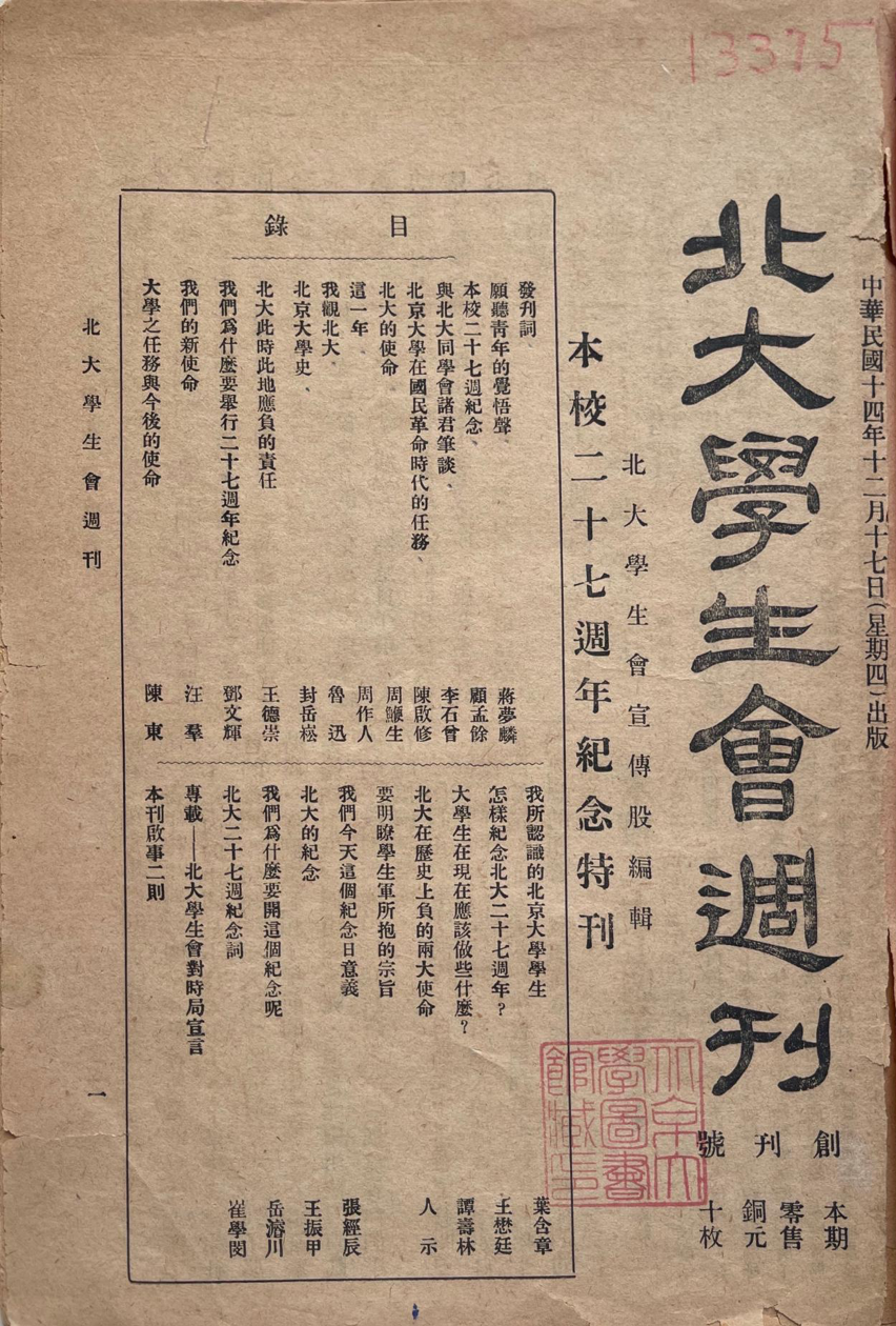 1925年《北大学生会周刊》