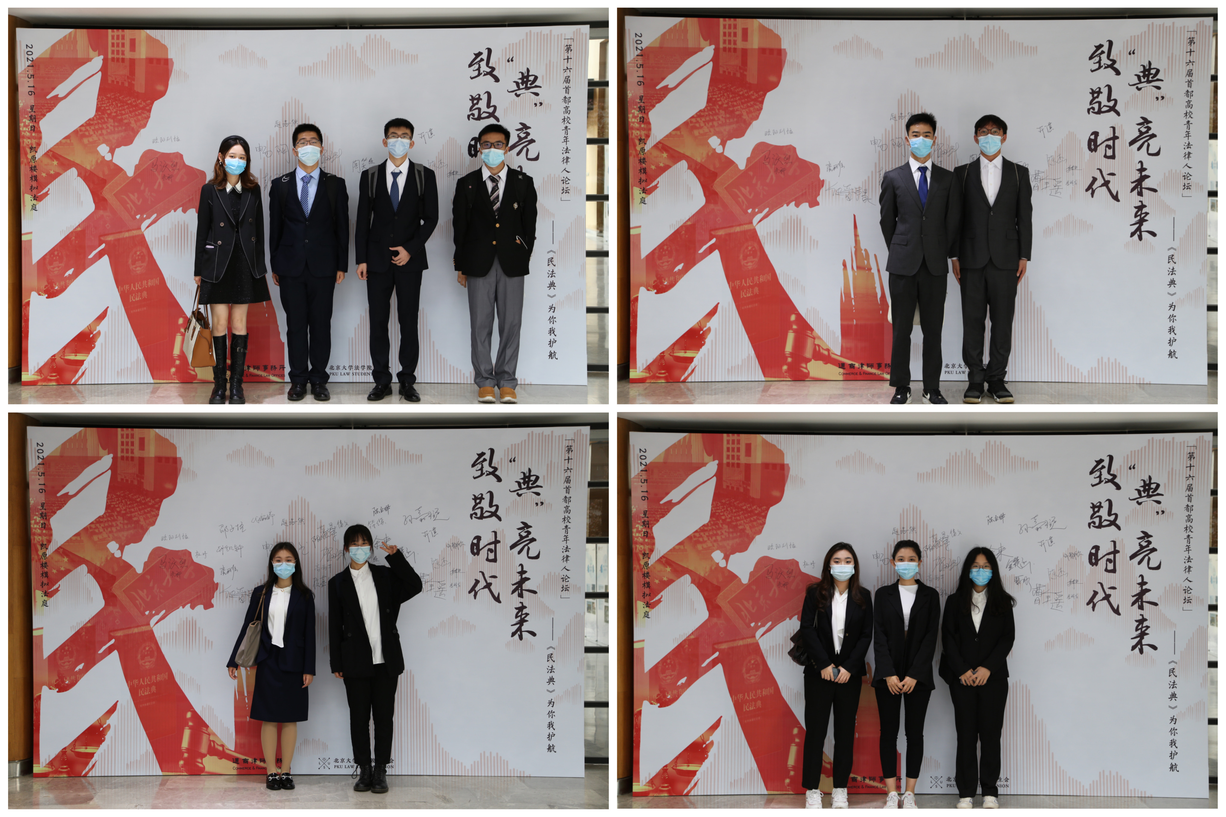 上午8时许,来自首都各高校3354cc金沙集团的学生代表陆续来到凯原楼模拟法庭,代表们在签名墙处签名、合影留念。