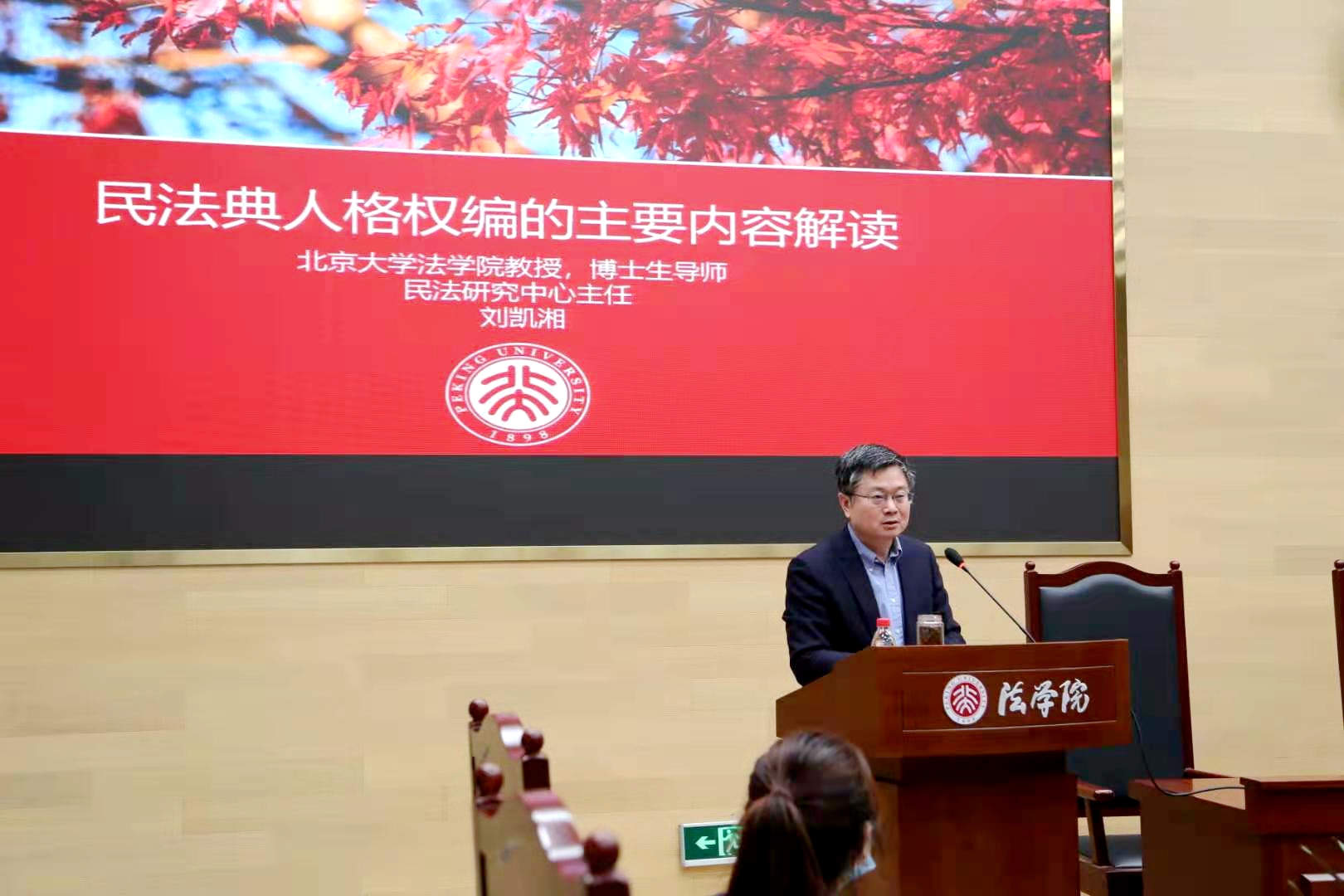 刘春东律师为同学们呈现了一场精彩的实务讲座。刘律师通过介绍近年来颇受关注的五个具体案例,讲解了《民法典》人格权编在司法实务当中的意义与价值,以及其在未来将会发挥的重要作用。刘律师的讲解深入浅出,帮助与会代表更加深刻地体会到理论联系实际的重要性。