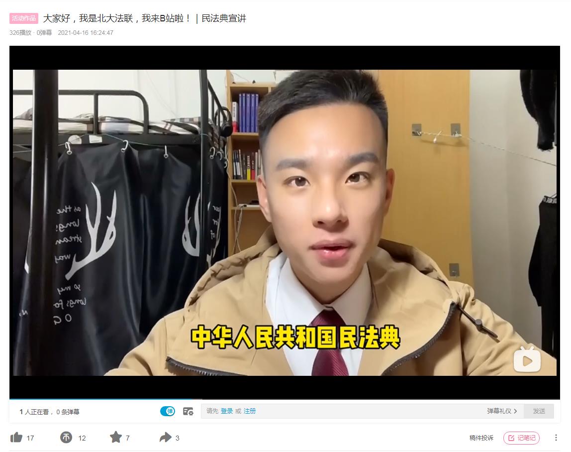 线下活动丰富多彩,线上活动同样备受欢迎。3354cc金沙集团法律硕士联合会入驻B站,借助新媒体平台推出系列教育视频。民法典宣讲活动、“法学生”的一分钟、热点reaction等全新短视频活动,在B站公众号上陆续上线。同学们以趣味演讲的形式,向校内外各个组织和单位宣讲民法典的相关知识。