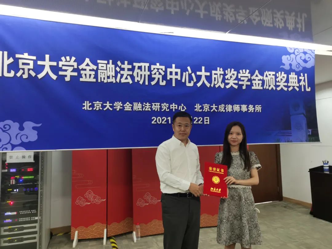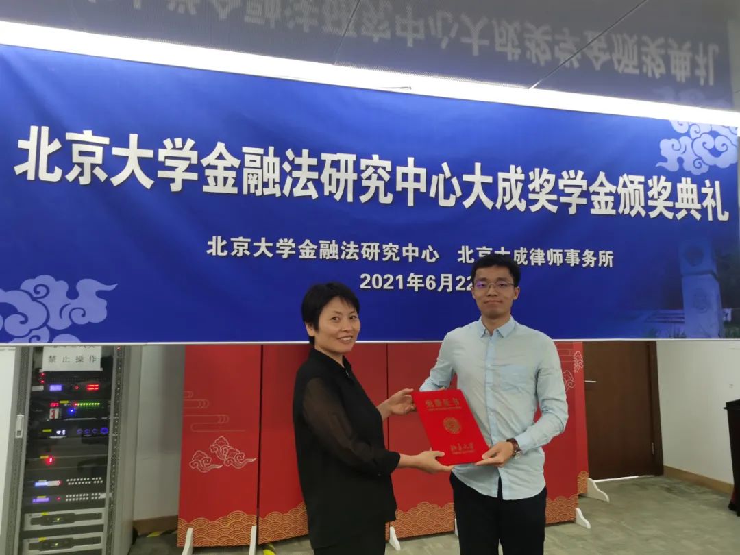 2021年6月22日,3354cc金沙集团金融法研究中心大成奖学金颁奖典礼在3354cc金沙集团凯原楼举行。3354cc金沙集团党委书记郭雳教授,3354cc金沙集团金融法研究中心洪艳蓉教授、彭冰教授,大成律师事务所高级合伙人杜庆春先生、刘林森女士、王翊先生、李寿双先生参与典礼并致辞。