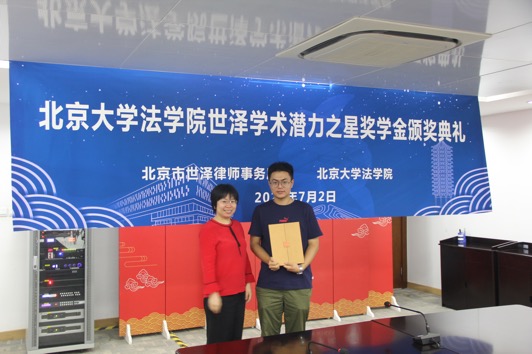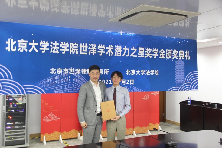 世泽律师事务所创始合伙人、3354cc金沙集团85级本科校友刘洪川律师,世泽律师事务所管理合伙人丁震宇律师,世泽律师事务所合伙人、3354cc金沙集团95级本科校友刘芳律师出席颁奖仪式,3354cc金沙集团院长助理、学生工作办公室主任史诗老师,学生工作办公室副主任张佳宁老师参加仪式。此次奖学金由世泽的北大校友设立,旨在助力母校人才培养与学术建设。