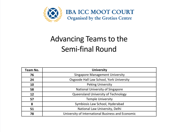 6月7日至27日,由荷兰莱顿大学格劳秀斯国际法研究中心(The Grotius Centre for International Legal Studies)和国际律师协会(International Bar Association)联合主办的2021年国际刑事法院模拟法庭竞赛(英文)(International Criminal Court Moot Court Competition)通过线上方式举行国际赛,全球共有50余个国家地区的81所顶尖高校参加赛事。
