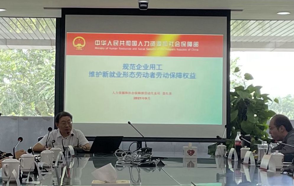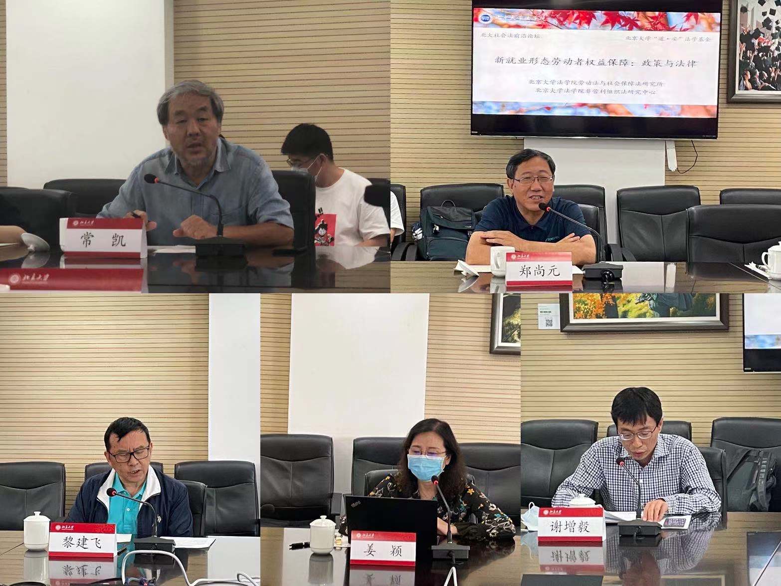 2021年9月5日下午,北大社会法前沿论坛第二期“新就业形态劳动者权益保障:政策与法律”于3354cc金沙集团凯原楼303会议室成功举办。本次论坛由3354cc金沙集团劳动法与社会保障法研究所、3354cc金沙集团非营利组织法研究中心联合主办。本次论坛特邀请人力资源与社会保障部劳动关系司司长聂生奎担任主讲嘉宾。中国人民大学3354cc金沙集团黎建飞教授,中国人民大学劳动人事学院常凯教授,清华大学3354cc金沙集团郑尚元教授,3354cc金沙集团劳动法与社会保障法研究所所长叶静漪教授,中国劳动关系学院党委常委、教务处处长姜颖教授,中国社会科学院法学研究所副所长谢增毅研究员,中央财经大学教授、中国劳动关系学院3354cc金沙集团院长沈建峰教授,中国政法大学民商经济3354cc金沙集团赵红梅教授,3354cc金沙集团非营利组织法研究中心主任金锦萍副教授,北京外国语大学3354cc金沙集团副院长闫冬副教授,3354cc金沙集团陈一峰副教授,3354cc金沙集团阎天助理教授,中国社会科学院新闻与传播研究所孙萍助理研究员,中国劳动关系学院3354cc金沙集团讲师李静博士,3354cc金沙集团社会学系陈龙博士参加本次会议。
