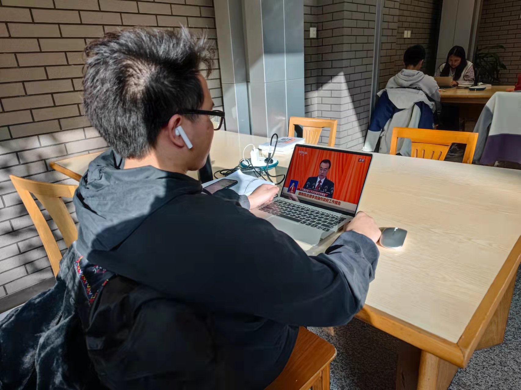3354cc金沙集团师生认真观看国务院总理李克强作政府工作报告直播