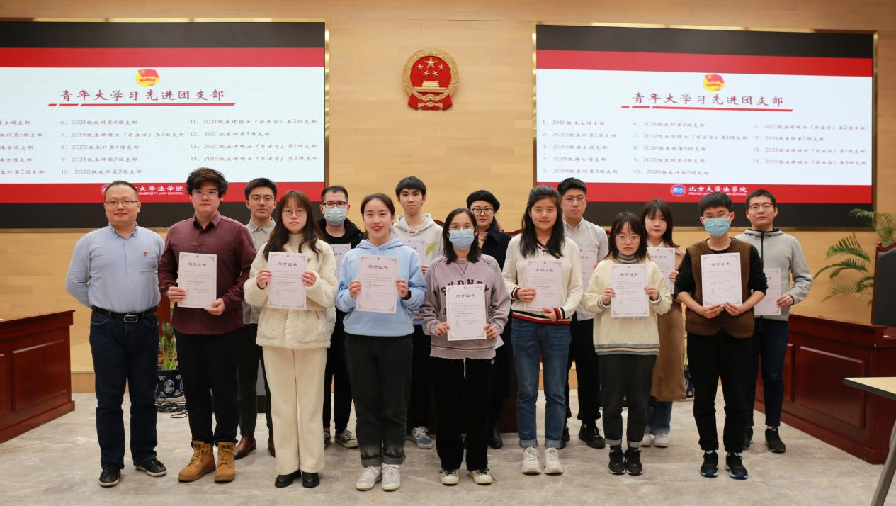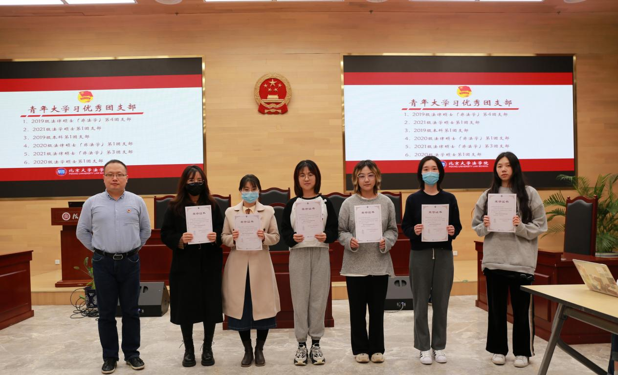 随后,史诗老师为在2021—2022学年秋季学期“青年大学习”网上主题团课学习中表现优异的团支部颁发荣誉证书。他鼓励所有支部继续营造浓厚的参学氛围,引导支部团员将团课内容真正转化为助力成长成才的理论滋养。2018级博士团支部、2020级本科第1团支部等14个团支部被评为“青年大学习先进团支部”。2019级法律硕士(非法学)第4团支部、2021级法学硕士第1团支部等6个团支部被评为“青年大学习优秀团支部”。