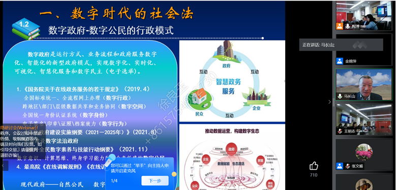中国社会法学研究会副会长叶静漪教授首先对马长山教授的讲座表示了感谢。她认为法理学为社会法提供了更广阔的研究视野,发展中的社会法应该与数字时代共进,需要从社会治理的角度展开,构建共享型社会法。