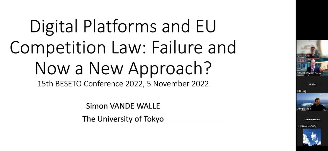 东京大学Simon Vande Walle教授发表学术报告“Digital Platforms and EU Competition Law: Failure and Now a New Approach?(数字平台与欧盟竞争法:失灵与当下的新路径?)”。他指出,一直以来竞争法被赋予保持市场开放和公平的职责,但目前欧盟竞争法已经难以有效应对市场力量日益增长的大型科技公司;作为应对,欧盟制定了《数字市场法》,目标在于创造一个更具竞争性、更公平的市场。《数字市场法》在内容上区别于欧盟竞争法,包括设置具体规则而非开放标准、设置对于守门人平台的正面和负面行为清单等。他提出《数字市场法》可能存在的问题,一是相关规则源于具体领域的反垄断案例,但现在需要普遍适用于不同商业模式的公司,二是这些规则能否有效执行仍有待观察。