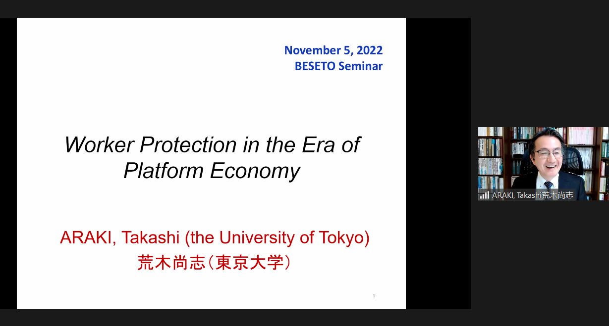 东京大学Takashi Araki教授发表学术报告“Worker Protection in the Era of Platform Economy(平台经济时代的劳动者保护)”。他指出,数字化平台工作形式更具灵活性,平台经济的劳动者不受时间、地点和工作方式限制,平台经济时代的劳动者如何定性成为一个亟待解决的问题。提出“非雇员劳动者(non-employee workers)”的五种保护方法及每种方法可能面临的问题。方法一是纠正将这部分劳动者定性为个体经营户的错误。方法二是拓展“雇员”概念的外延,但这种过度保护可能会牺牲部分自由性。方法三是在雇员和个体经营者之间引入一个“类雇员”的中间类别,但这存在两个问题,即劳动法规范未必是保护非雇员的理想标准以及处理集体劳动法与竞争法的冲突需要解决。方法四是为“非受雇”劳动者或个体经营者提供特别保护,但这一方法目前欠缺立法规范的支持。方法五是提供劳动法外的法律保护和非法律措施保护,前者包括反垄断法、税法、社保法等,后者包括软法、声誉、激励等,但此类措施的问题在于可能欠缺足够的保护力度和有效性。当然,这五种方法并不互斥。他认为应当明确保护“非雇员劳动者”的必要性,各国都应选择适当的措施为这部分群体提供必要的保护,同时也应当协调劳工政策与其他规范(反垄断法、税法、社会保障法等)的关系,为所有的个体工作者提供更好的权益保障。
