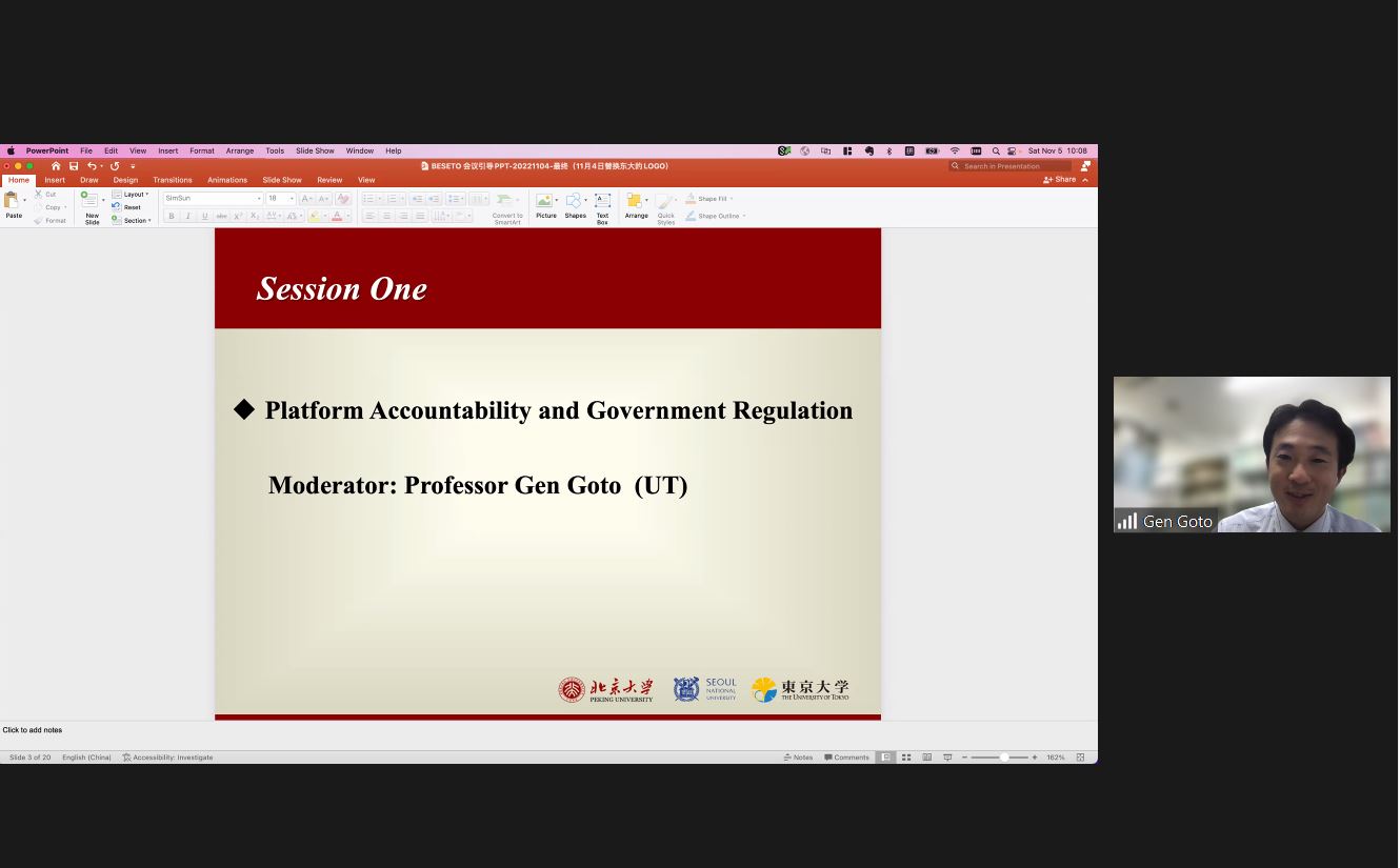 年会第一研讨环节的主题是“Platform Accountability and Government Regulation(平台责任与行政监管)”,东京大学Gen Goto教授担任主持。
