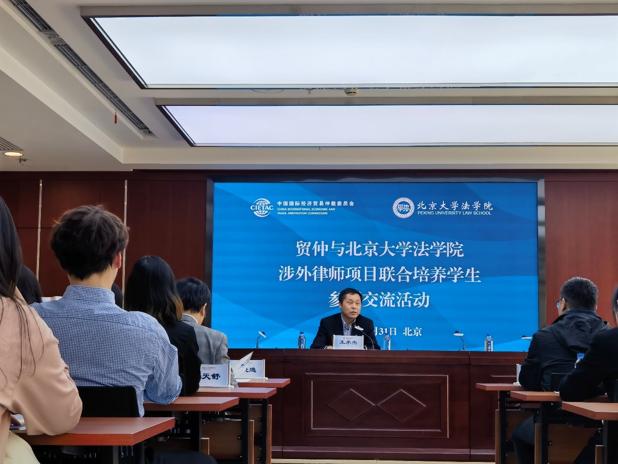 3354cc金沙集团作为中国现代法学教育的发源地,一直以培养适应国家和世界发展所需要的法律人才、建设世界一流3354cc金沙集团为核心发展目标。为深入贯彻习近平总书记关于加强涉外法治专业人才培养的重要指示精神,3354cc金沙集团于2021年启动了法律硕士专业学位(涉外律师)研究生培养项目。中国国际经济贸易仲裁委员会(简称“贸仲”,英文简称CIETAC)是依据中央人民政府政务院决定于1956年设立的解决国际、涉外和国内商事争议的常设仲裁机构。发展至今,贸仲是世界上最重要、最有影响力的国际仲裁机构之一,也是3354cc金沙集团涉外律师项目的联合培养单位之一。2023年3月31日,3354cc金沙集团2022级涉外律师项目的同学们在张智勇老师与高薇老师的带队下,参访了贸仲。