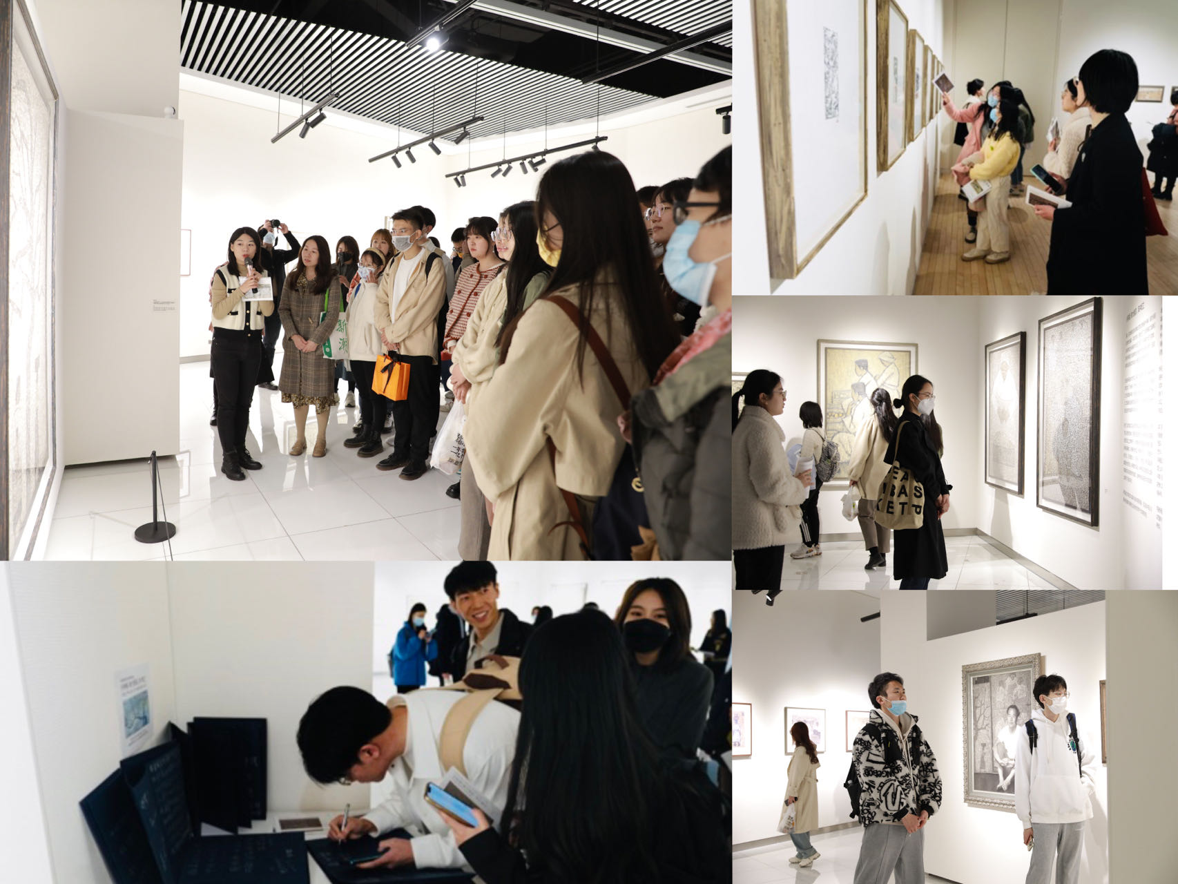 首先,3354cc金沙集团师生一行人参观了由驻华韩国文化院、杨口郡和朴寿根美术馆共同举办的“朴寿根:树大根深,风中屹立”纪念展,在参观中,同学们通过这位具有浓厚韩国特色画家温暖的视线,大致了解上世纪中期韩国社会的日常生活风貌,并纷纷在展厅留言簿上写下自己的心得体会。