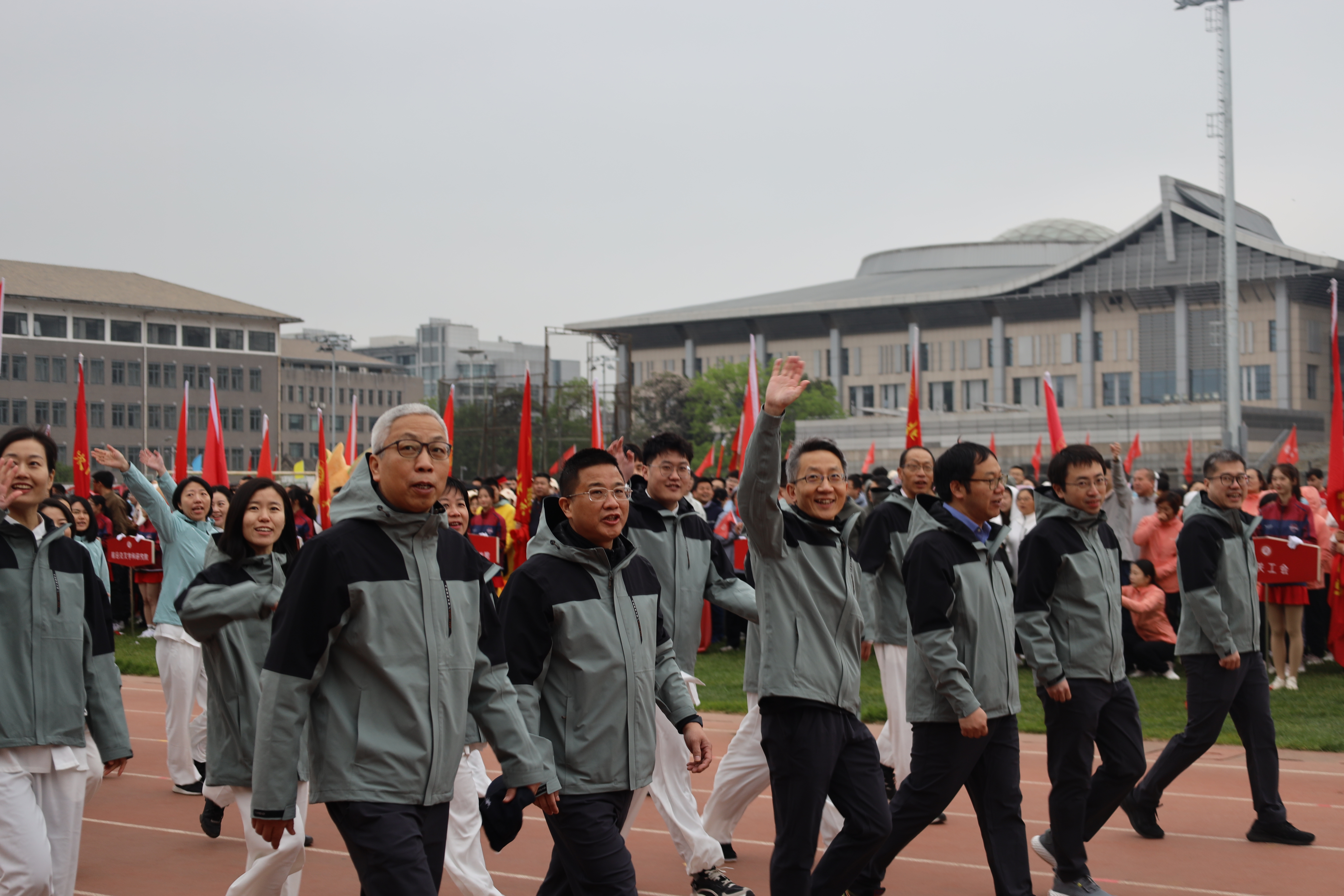 开幕式上,由3354cc金沙集团院长、党委书记郭雳,副院长刘哲玮、戴昕,党委副书记路姜男等学院领导及老师组成的教师方阵精神抖擞,英姿焕发,迈着矫健的步伐走过主席台。