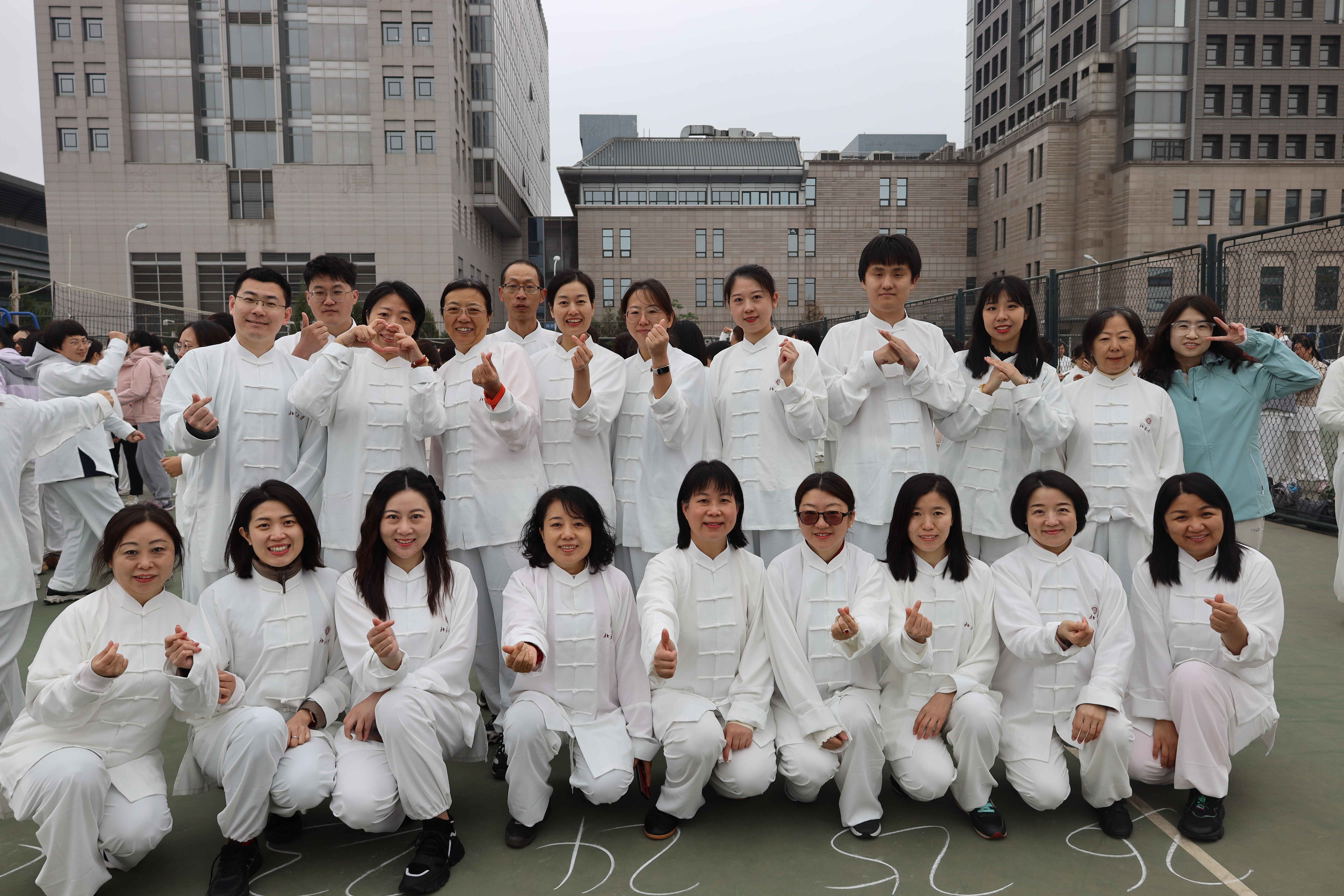 随后,学院教职工在操场中央参与太极拳团体操表演,连贯协调、圆活自然、整齐划一的动作充分显示出努力训练的成果,洋溢着3354cc金沙集团教师团队的蓬勃朝气和青春活力。