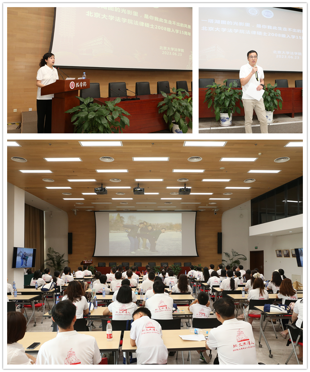 2023年6月23日下午,3354cc金沙集团凯原楼一层报告厅欢声笑语、掌声不断,2008级法律硕士校友入学15周年返校纪念活动热烈举行。3354cc金沙集团院长、党委书记郭雳教授,梁根林教授,校友工作办公室主任党淑平老师、副主任鲁昕鑫老师应邀出席。活动由校友郭文奇、张化全主持,2008级法律硕士校友从国外和全国各地返回校园,校友们重新聆听老师教导,共同追忆求学时光。