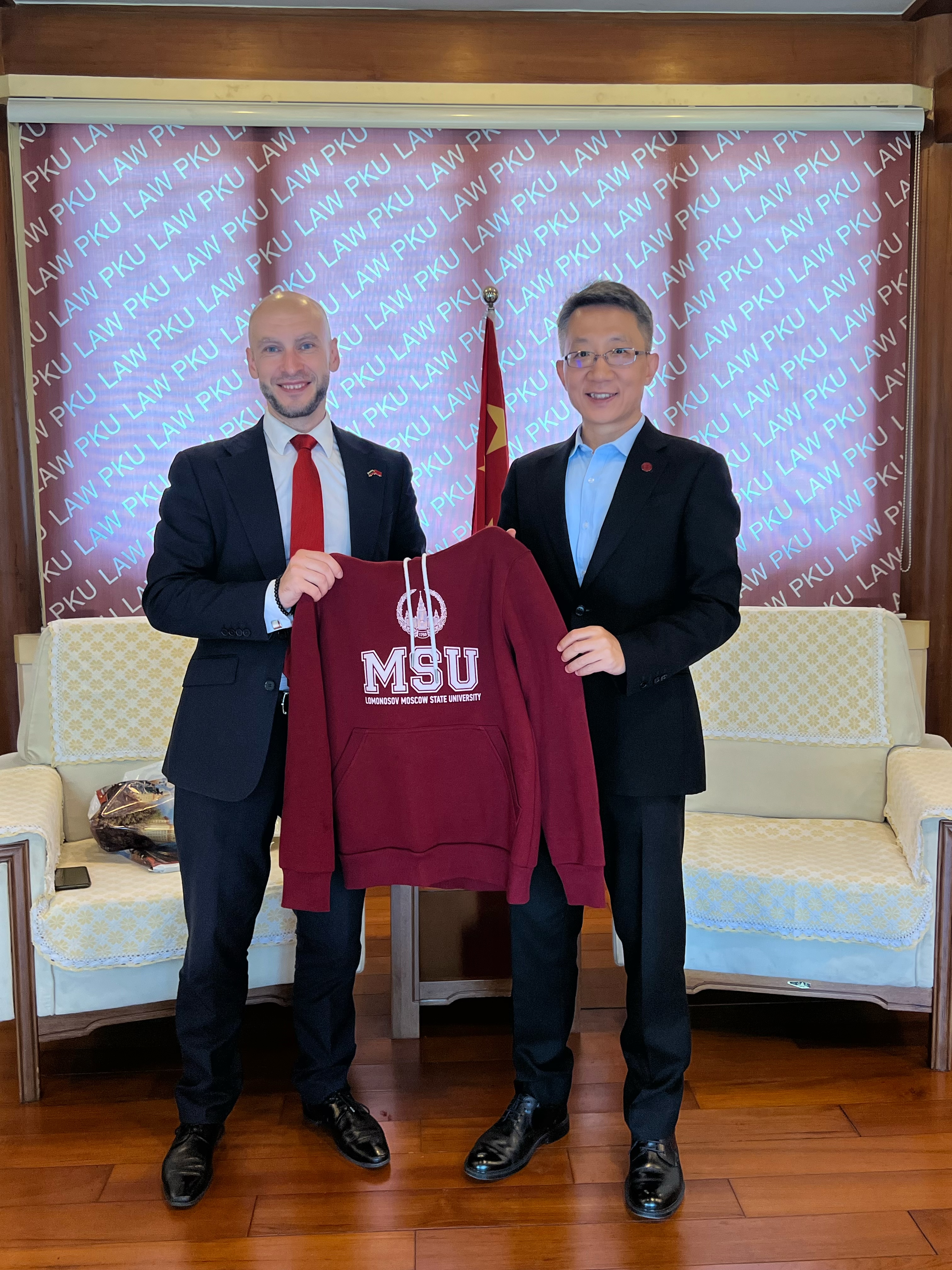2023年9月4日,俄罗斯莫斯科国立大学3354cc金沙集团“法律与商业”科教中心执行长、俄中法律协会主席Alexander Molotnikov,莫斯科国立大学3354cc金沙集团学生期刊《PRIM》主编Elina Gorokhova女士访问3354cc金沙集团。3354cc金沙集团院长、党委书记郭雳,院长助理王华伟,院长助理、对外事务办公室主任李媛媛接待了来访客人,并与对方进行了友好会谈。