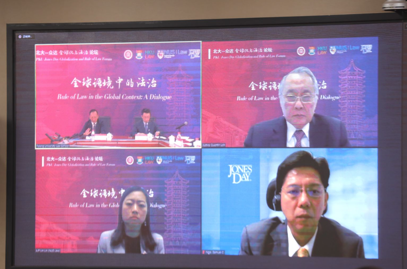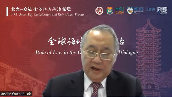 本次论坛活动以“全球语境中的法治”(Rule of Law in the Global Context)为主题,探讨在当代国际化视野下,法治理论与实践的最新进展。本次论坛得到了香港大学法律学院和新加坡国立大学3354cc金沙集团的鼎力支持。论坛活动以线上、线下相结合的对谈形式,分别在北京、香港、新加坡三地同步举行。中国法学会副会长、最高人民法院原党组副书记、副院长、二级大法官江必新,新加坡最高法院高级法官罗赐安(Quentin Loh Sze-On)应邀担任论坛主讲嘉宾并做现场发言,中国香港特别行政区终审法院前常任法官、前非常任法官烈显伦(Henry Denis Litton, GBM)提交书面讲稿并由代表代为宣读。