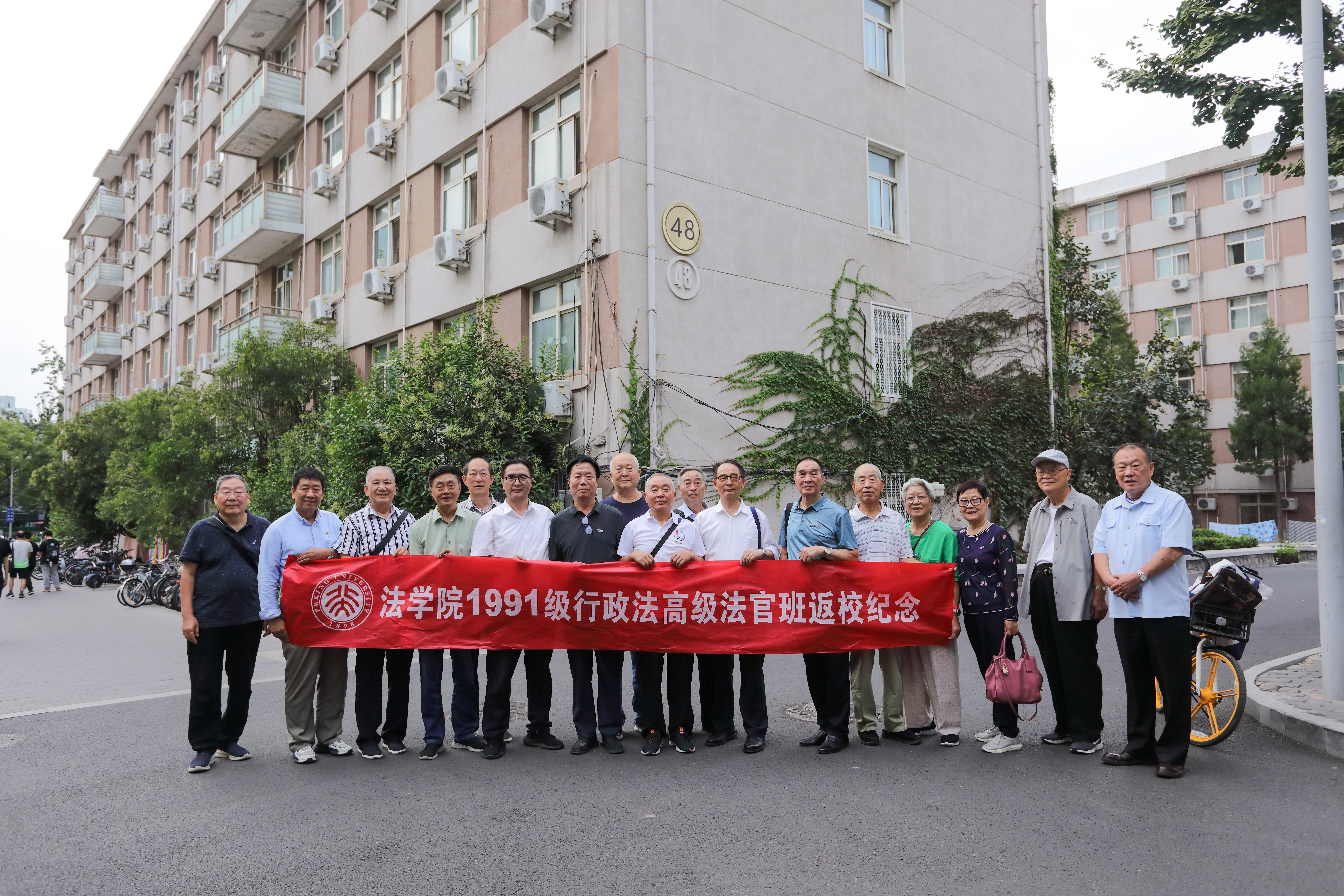 交谈结束后,校友们在老师的陪同下,重游校园,并特别在校友们的老宿舍48号楼合影留念。
