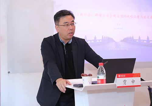 赵宏教授以新时期跨国企业合规形势的挑战与应对为题进行了主旨演讲。从当今的时代特征与总体形势,到国际经贸规则发展动向和我国海外利益的保护,从合规的总体把握到合规的专项讨论,赵宏教授结合自身在世贸组织的工作经历与学术前沿的最新成果,旁征博引、娓娓道来。她强调,对于合规案件的具体处罚与应对都是细节,属于“器”,而在北大更要学“道”,得道方可在跨国企业走出去的过程中从容自信,顺势而为。