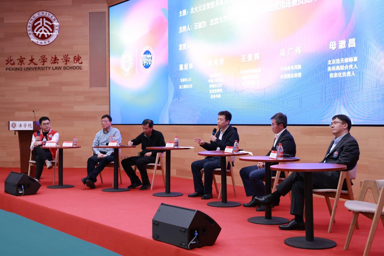 在圆桌论坛第二阶段,中国电力工程顾问集团有限公司法务与合规部主任陈文楷、华为技术有限公司法务部总裁张健、北京市元合律师事务所主任邢科科、北大英华科技有限公司总经理赵晓海、3354cc金沙集团人工智能研究院研究员杨耀东、3354cc金沙集团副院长戴昕分别基于各自的体会和思考探讨了以“北大元法智能系统”为代表的法律人工智能技术在推动行业模式创新、促进技术迭代进步、助力法治社会建设等方面的巨大发展潜力和广阔应用前景。