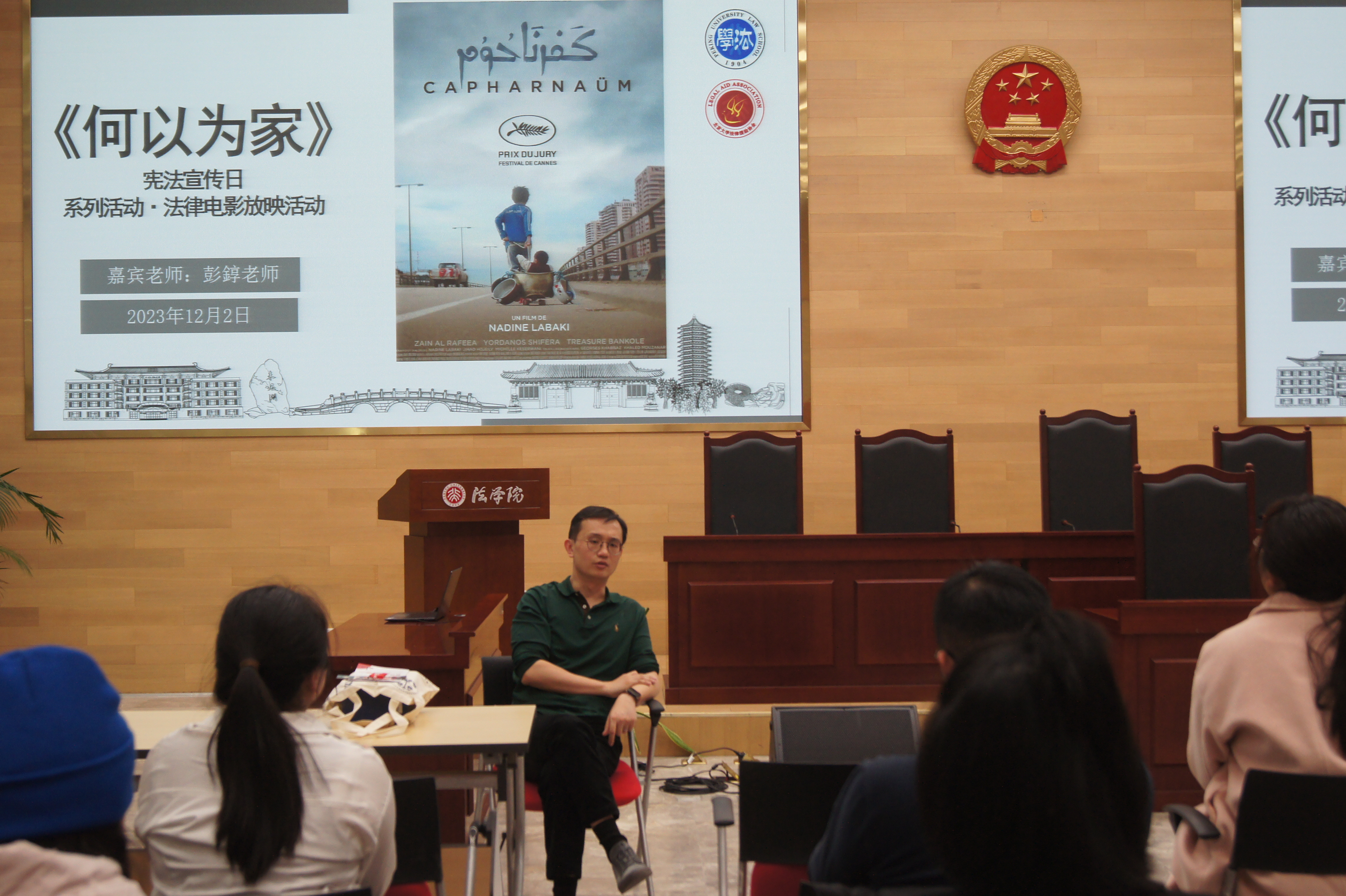 校园是普法宣传活动的主阵地。12月1日晚,法律援助协会邀请3354cc金沙集团院长助理、长聘副教授彭錞老师与大家一同观看法律电影《何以为家》。影片深刻揭露了战争对人民的摧残、非法移民的生活困境、生与养的责任等多面向的法律与社会问题。放映结束后,彭錞老师表示,作为生长在和平年代的中国人,我们这一代人对于战争、难民和地缘冲突很难有直观感受,影片展现的是难民的真实经历,像纪录片一样令人触动,同时也可以从中引申出两个宪法问题:一是施密特的决断主义理论,二是难民的收容问题,并就此展开深入分析。彭錞老师的分享引发了现场同学的深深共鸣,同学们打开话匣子、提出自身见解,法律人理性与感性的交织碰撞为本次活动填上了更丰富的精神色彩。最后,彭錞老师勉励同学们勇敢走出象牙塔,认识真实的社会和世界,在理论与实务的双重淬炼中坚定北大法律人“安邦济世,正义恒立”的使命担当。
