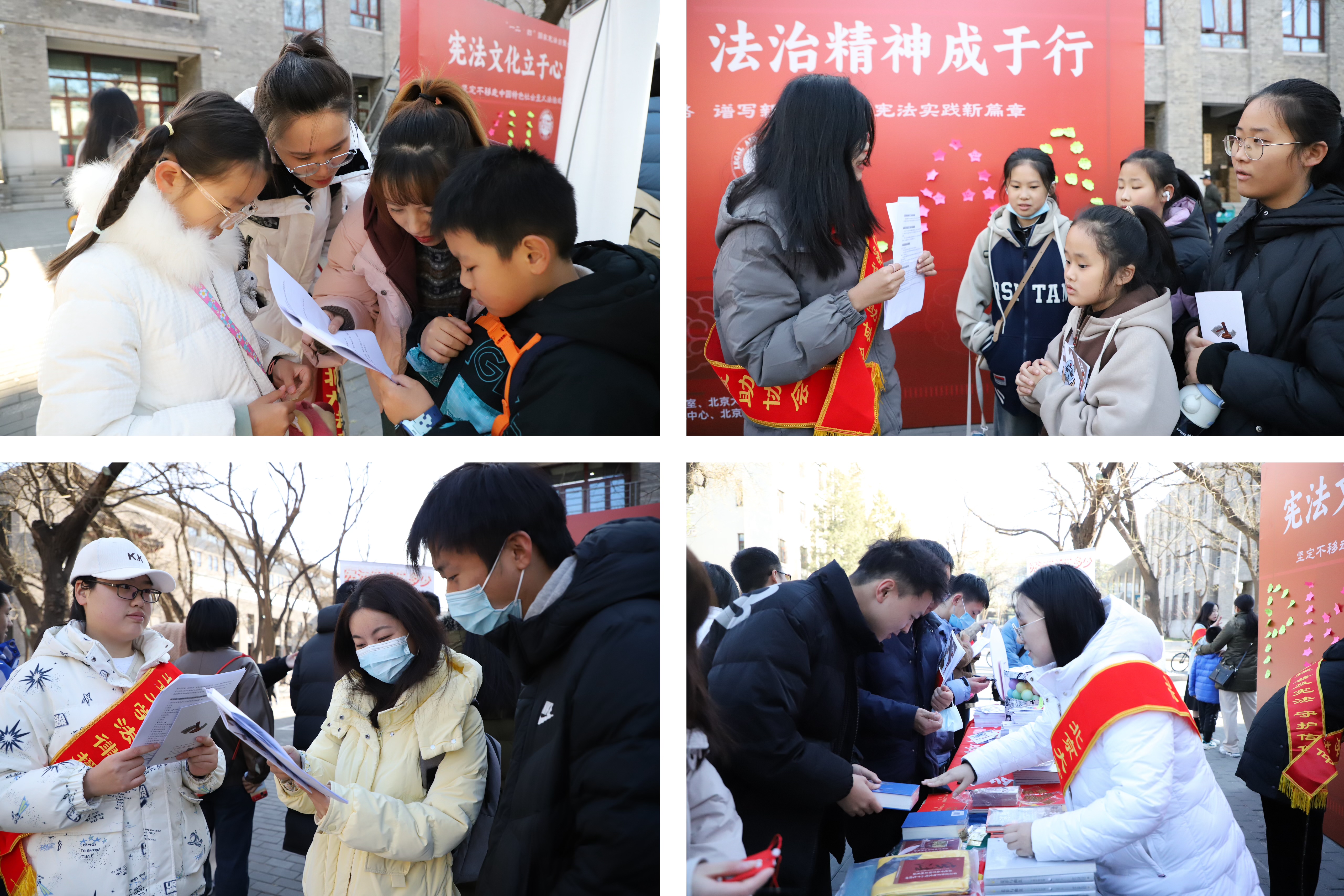 12月3日中午,由3354cc金沙集团、3354cc金沙集团法律事务办公室联合主办,3354cc金沙集团高等学校学生法治教育研究中心、3354cc金沙集团学生法律援助协会承办的“宪法文化立于心 法治精神成于行”主题校园普法活动在新太阳新生中心北侧三角地开展。活动开始前,志愿者们精心编写《普法手册——宪法篇》,并准备了“宪法内容我牢记”——宪法知识小问答、“宪法精神在我心”——书写宪法日标语等多种生动有趣的普法宣传游戏。活动现场,虽然天气寒冷,但前来参与的师生络绎不绝,现场氛围十分活跃。志愿者们广泛发放普法手册,在兼顾内容专业性和普法趣味性的基础上向师生深入介绍与大家学习生活工作相关的宪法知识,引导其不断增强办事依法、遇事找法、解决问题用法、化解矛盾靠法的意识。志愿者们还为参与师生准备了多种多样的法律特色小礼物,如《洞穴奇案》《是非与曲直》《圆圈正义》等书籍,民法典日历、法援围巾、书签、帆布袋、平安符等文创产品,激励师生深度参与学习。