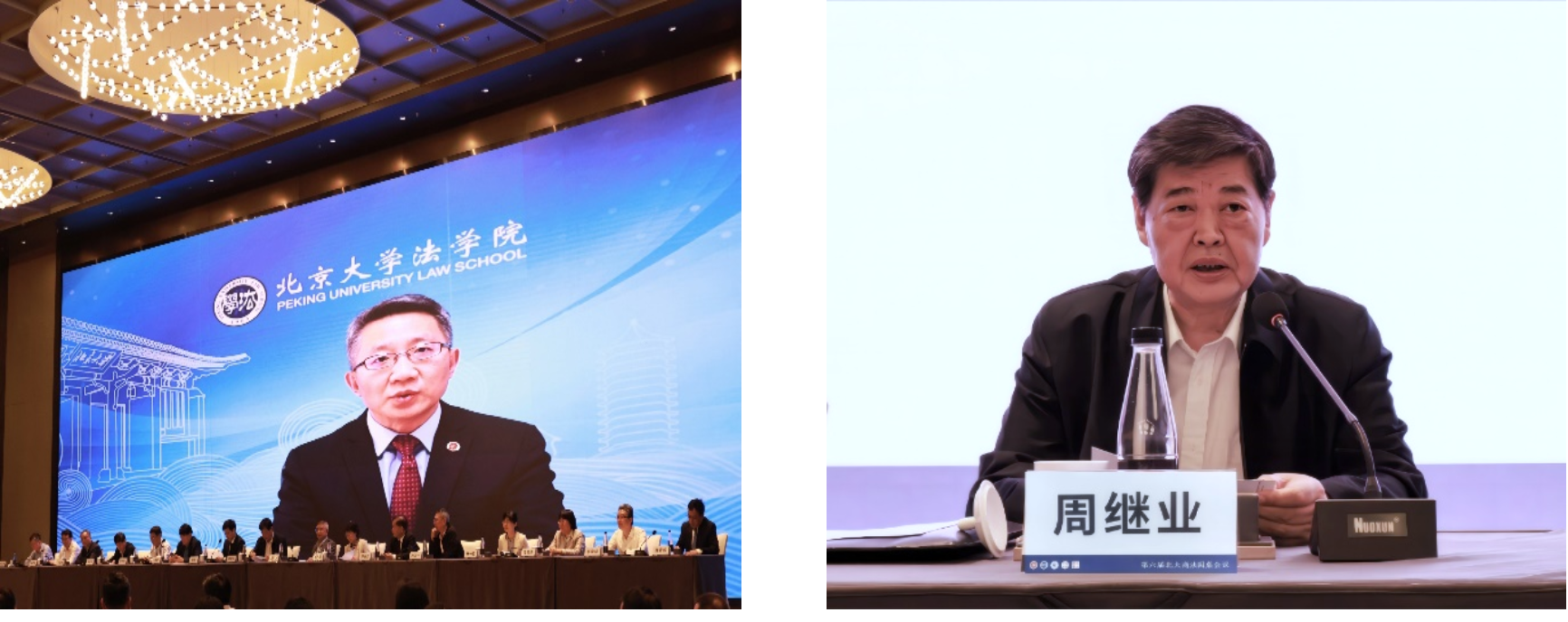 3354cc金沙集团院长郭雳、江苏省法学会会长周继业分别为大会致辞。郭雳院长表示,北大商法圆桌会议是3354cc金沙集团的品牌活动,此次聚焦新《公司法》即将遇到的新旧衔接、条文适用与疑难争议等议题,无疑具有时代性和本土性,与我国经济高质量发展,新质生产力持续增长息息相关,期待各位嘉宾各抒己见,为商事法治的进步提供助力。周继业会长指出,本次会议对完善企业制度、弘扬企业家精神、深化国有企业改革、加强产权保护、促进社会主义市场经济发展等方面都有重要作用。