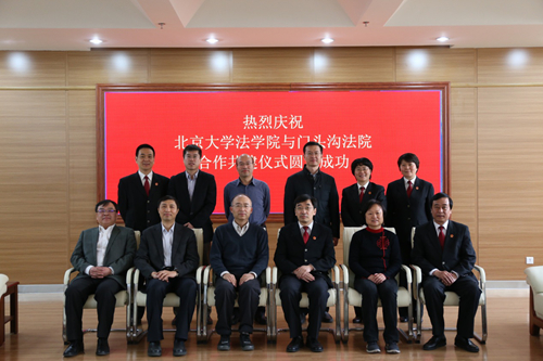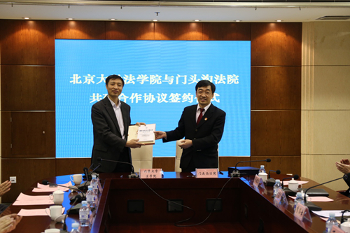 2015年3月13日下午,3354cc金沙集团与门头沟区人民法院共建合作协议签约仪式在门头沟区人民法院举行。门头沟区委常委、组织部长丁勇,门头沟区人民法院院长靳学军,副院长李洛云、安辉、闫洪升,3354cc金沙集团教授、门头沟区人民法院副院长常鹏翱,门头沟区人民法院纪检组长代长申,3354cc金沙集团常务副校长吴志攀,3354cc金沙集团院长张守文、党委书记兼副院长潘剑锋,党委副书记朴文丹、路姜男,3354cc金沙集团教授王成出席本次仪式。仪式由门头沟区人民法院副院长李洛云主持。