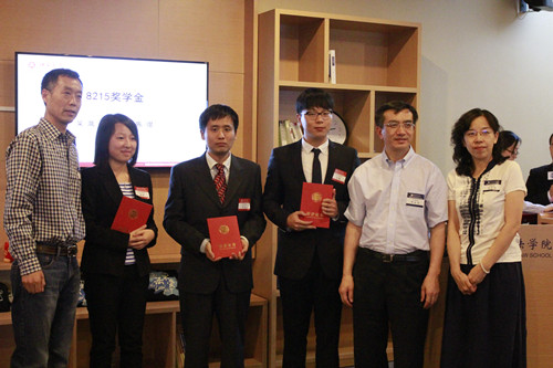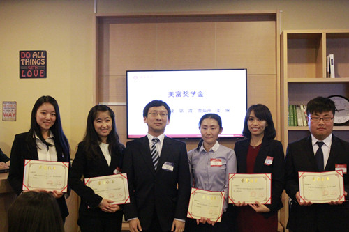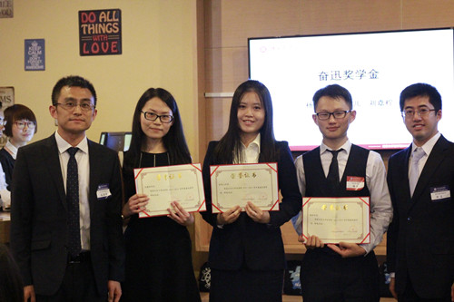 随后,各位嘉宾为获奖同学颁奖,并合影留念。本场典礼共颁发8215奖学金、方达游学奖学金、奋迅奖学金、美富奖学金、欧华奖学金、青春梦想奖学金、元达奖学金和岳成奖学金共计八项奖学金。