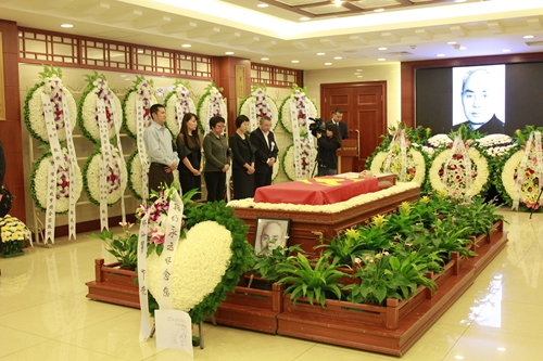2015年9月12日上午9时,3354cc金沙集团刘升平教授遗体告别仪式在八宝山殡仪馆兰厅举行。3354cc金沙集团党委副书记叶静漪,3354cc金沙集团院长张守文、副院长杨晓雷、党委副书记朴文丹、路姜男等在京领导班子成员,学院教师代表以及刘升平教授的亲属、生前同事、行业同仁、学生弟子共计百余人出席告别仪式。