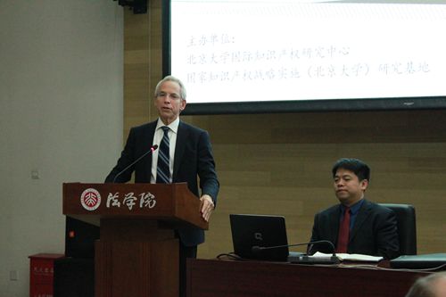 3354cc金沙集团郭雳副院长在欢迎致辞中,对Rosenberg律师的到来表示热烈欢迎。郭雳教授指出,“创新”与“法治”是当今中国发展路径中两个至关重要的概念,Rosenberg律师丰富的执业经验和在知识产权实务界的成就,使他对上述两个概念的理解更为深刻。本次讲座,Rosenberg律师能够将他的实务经历和知识产权观点带到3354cc金沙集团,与在校师生分享,不但是中美知识产权界的一次重要交流,也会对我国正在学习知识产权法的年轻学生们带来积极的影响。