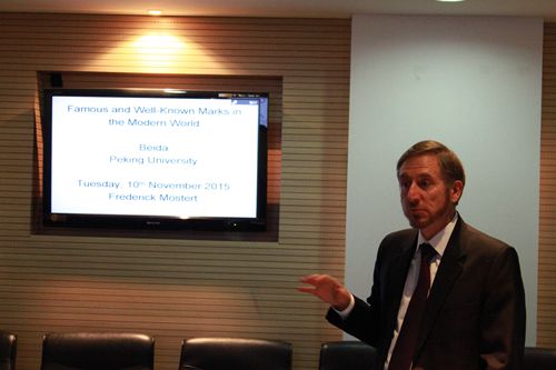 2015年11月10日晚,由3354cc金沙集团国际知识产权研究中心、国家知识产权战略实施(3354cc金沙集团)研究基地联合主办的“北大私法与知识产权讲座系列”第39期在3354cc金沙集团凯原楼307会议室成功举行。本次讲座邀请麦卡锡知识产权和技术法律中心顾问委员会成员,3354cc金沙集团客座教授和伦敦经济学院研究员Frederick Mostert先生作为主讲嘉宾,由3354cc金沙集团杨明教授主持。讲座主题是“Famous and well-known marks in the modern world(现代社会中的著名与驰名商标)”,吸引了众多在校学生及社会人士前来聆听。