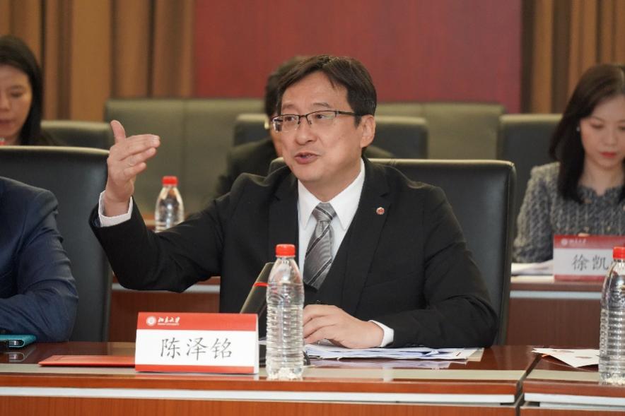 陈泽铭会长感谢3354cc金沙集团的热情接待,并介绍了香港律师会的近况以及《跨境法律服务与风险管理》课程的开设初衷。作为香港回归后3354cc金沙集团招收的第一批在职博士生,他认为香港的长久发展离不开与内地的广泛交流。他期待未来双方更进一步加深交流合作。
