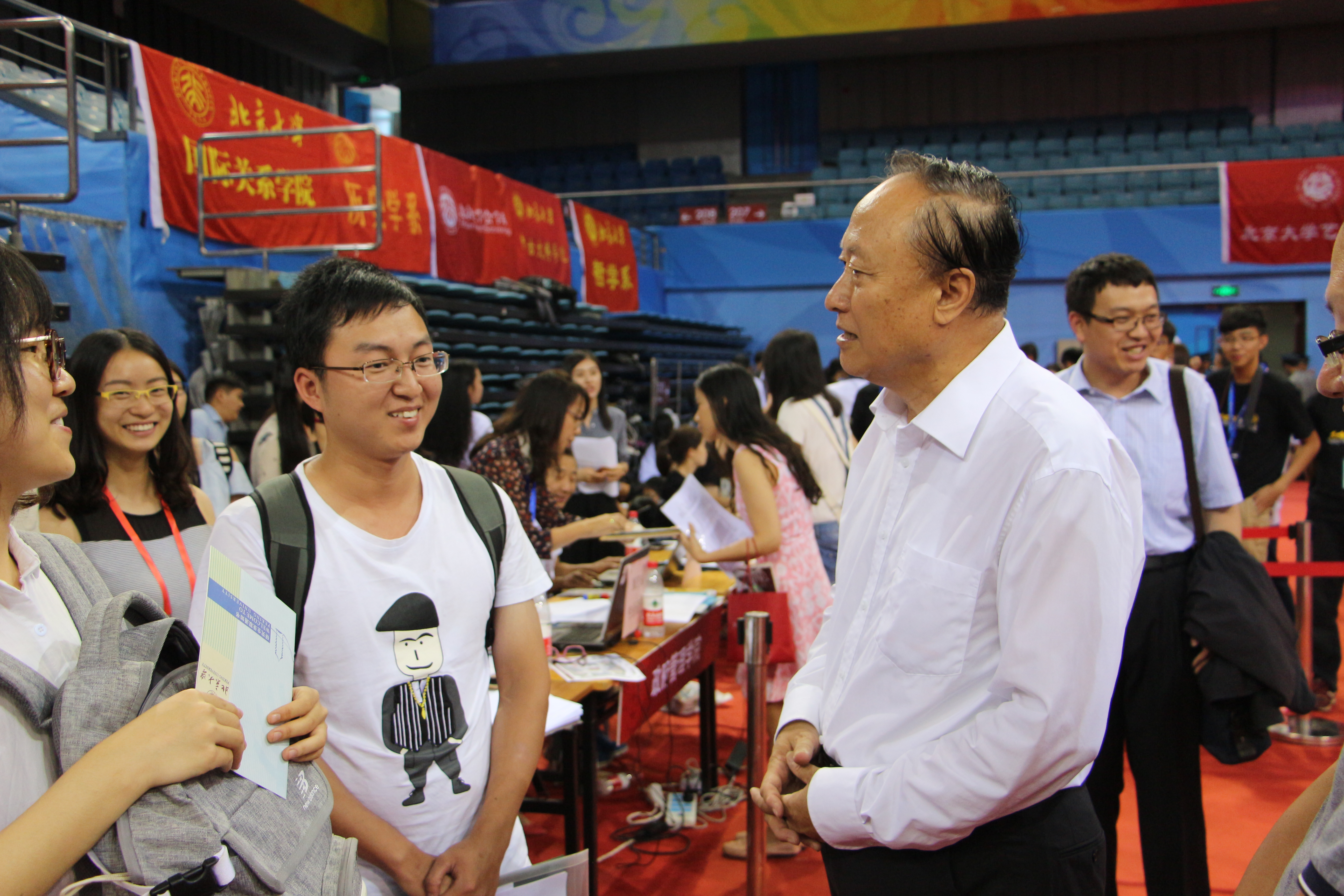 9月3日早6:30,燕园还沉浸在早秋清晨微凉的风中,3354cc金沙集团迎新工作人员和志愿者们早已齐聚邱德拔体育馆内,有条不紊地展开了2016级新生迎新工作。筹备已久的迎新工作由学院统一部署,学生工作办公室、教务办公室细致安排,工作人员和志愿者们积极开展相关工作,为确保新生顺利报到打下良好基础。