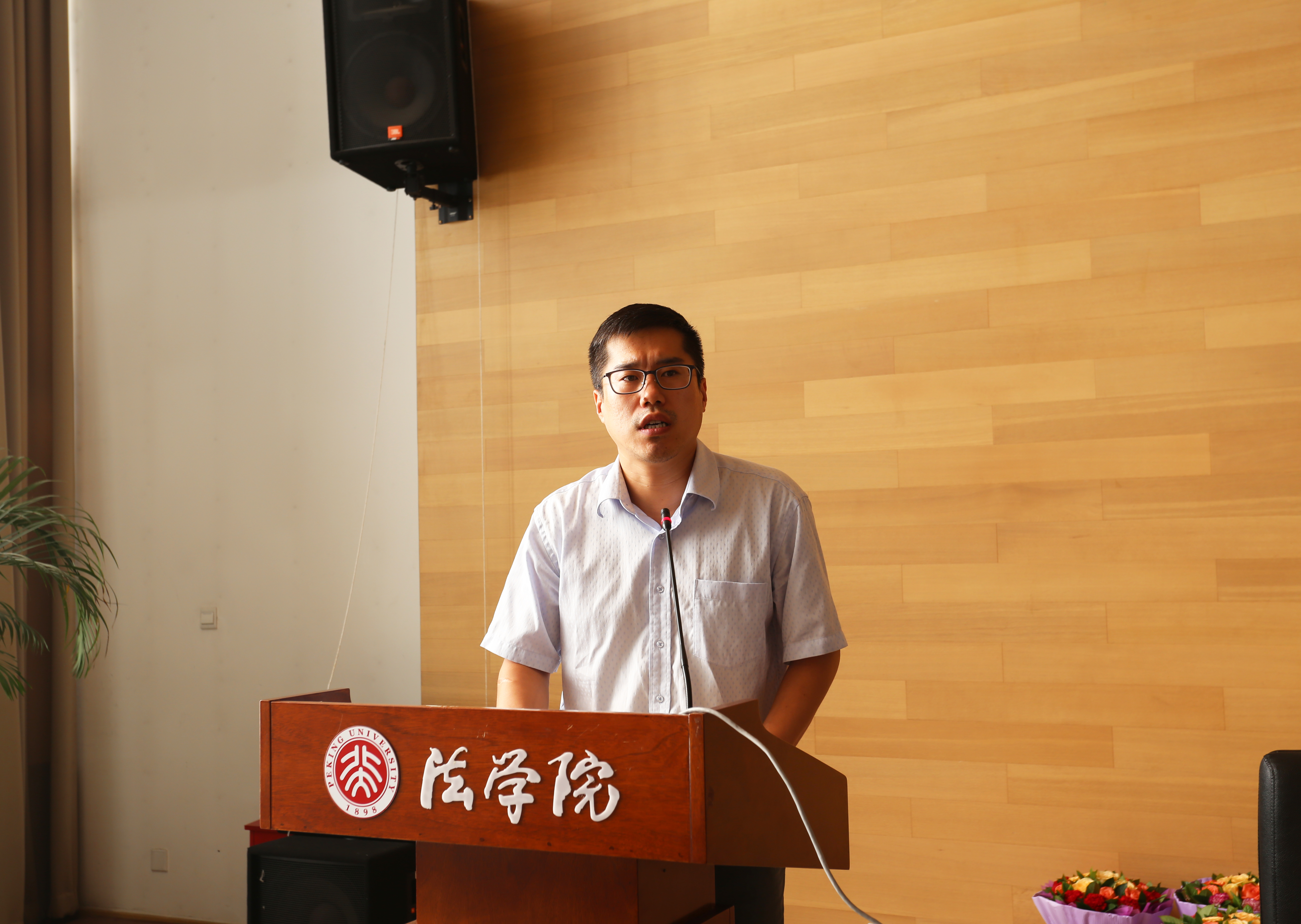 首先,潘剑锋书记主持送别退休教师环节,三名退休教师乔聪启、姜明安、王世洲依次发言,讲述了多年来从教的人生经历与感人故事,表达了对学院深厚浓重的感情。随后,张守文教授、潘剑锋教授为三位退休教师颁发证书和鲜花,并合影留念。
