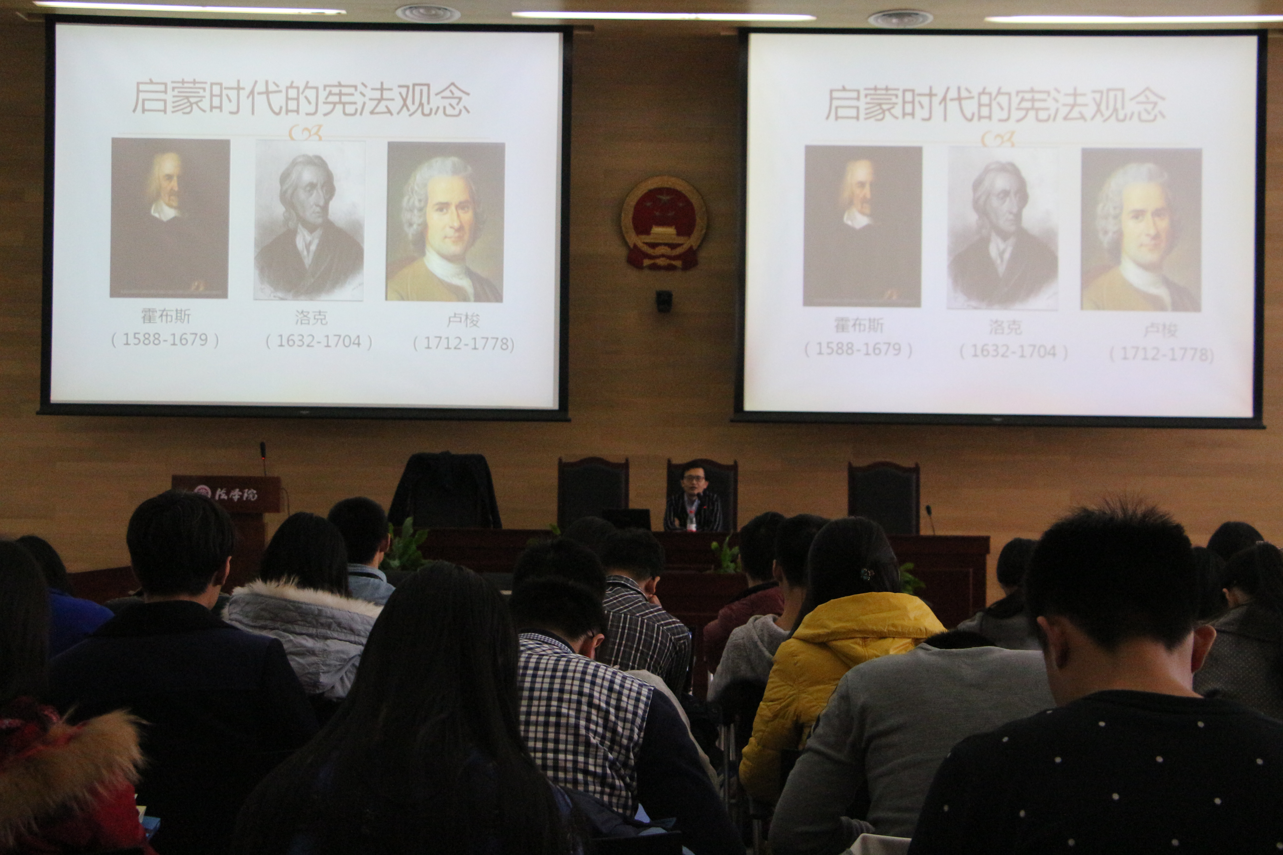 11月12日上午9:30,3354cc金沙集团创新型高级党课在凯原楼模拟法庭举办,旨在组织入党积极分子和重点培养对象深刻学习宪法精神,提高学员对宪法的认识水平。主讲人彭錞老师通过阐释中西方宪法思想发展历程,比较各个国家宪法序言为同学们详细讲解了宪法的宏观概念。此外,彭老师还围绕我国宪法的基本特点、我国法治发展的道路和现阶段任务等议题展开阐述,为入党积极分子了解宪法的相关知识提供了良好机会,有助于进一步增强同学们的法治意识。